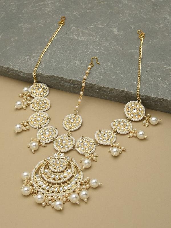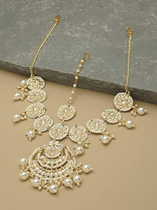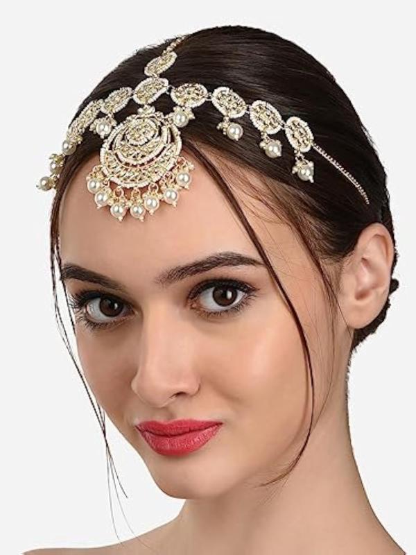 Elegant tone kundan & embellished bridal mathapatti maangtikka to enhance your bridal look.