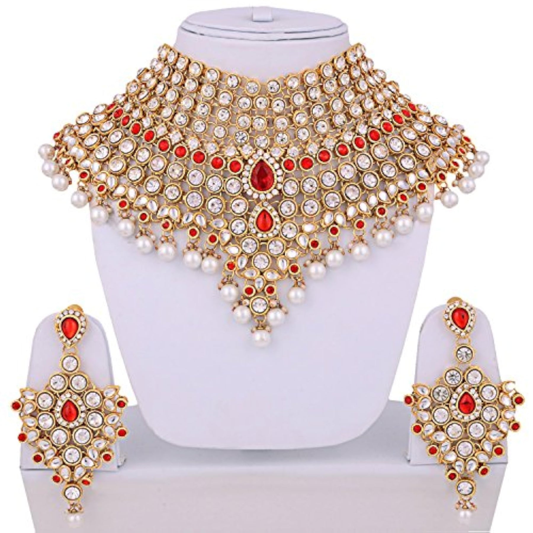Exquisite plated Kundan jewellery set with intricate design for bridal wear.