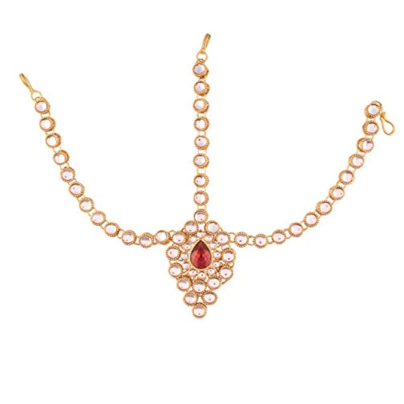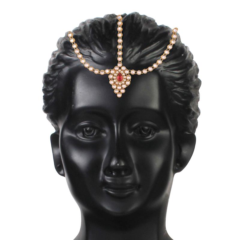 Elegant and traditional Kundan maang tikka plated for a stunning look.