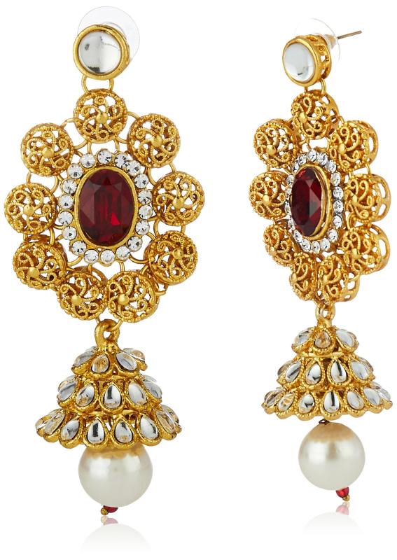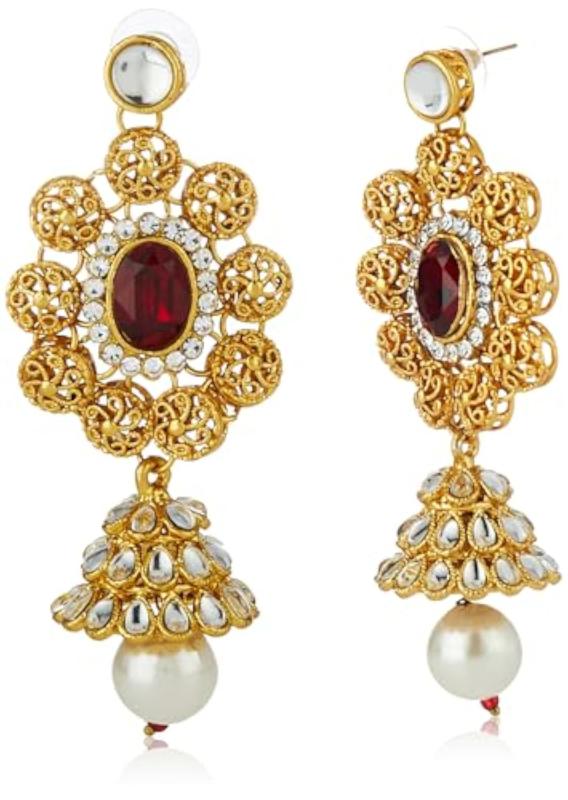 Beautiful non precious metal traditional Kundan jewelry set including necklace, earrings, maang tikka, and passa.