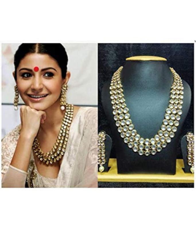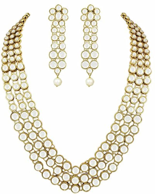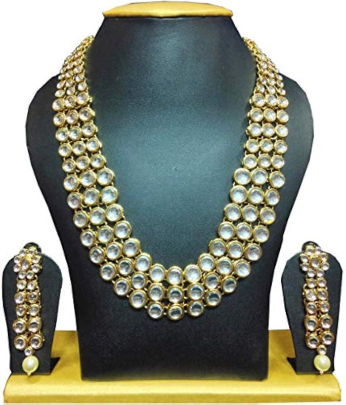 Elegant traditional jewellery set featuring kundan and pearl elements. Perfect for special occasions.