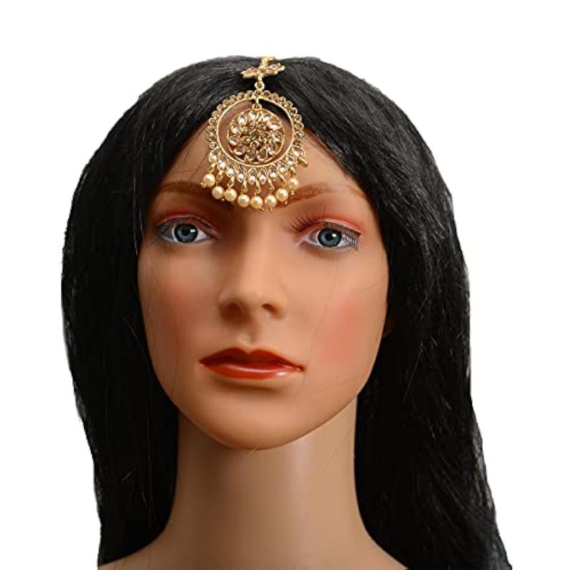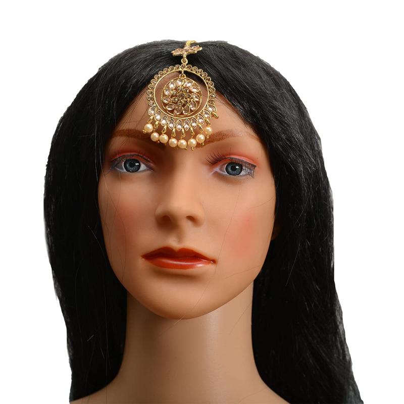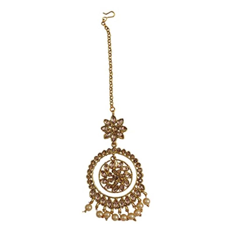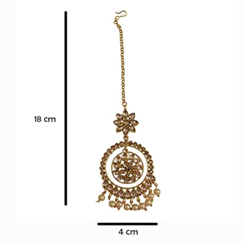 Enhance your ethnic look with this exquisite maang tikka that features intricate design and gold plating. Perfect for weddings and special occasions.