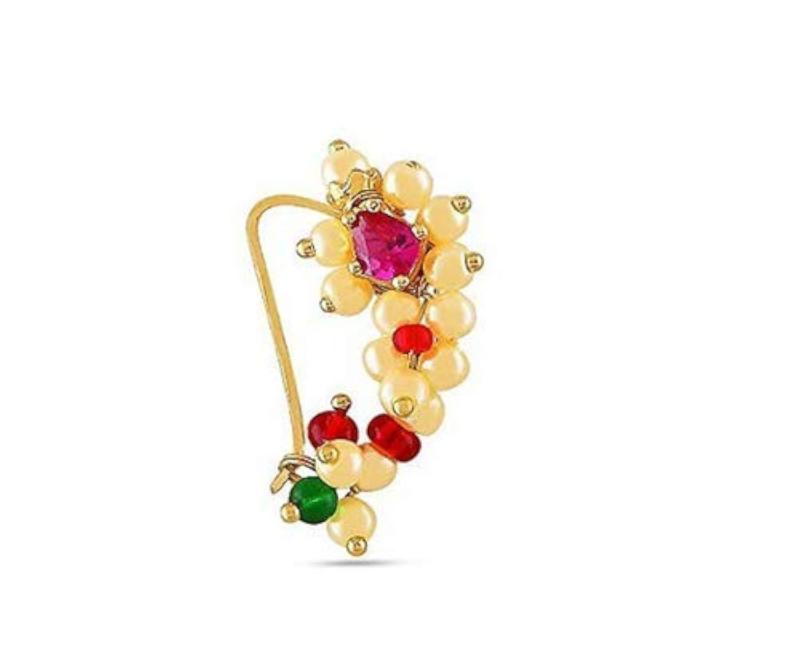Enhance your bridal look with this elegant Maharashtrian nath nose ring featuring pearls. Perfect for weddings and special occasions.