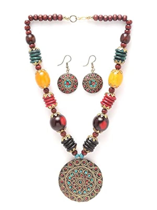 Elegant and stylish Tibetan pendant necklace jewellery set