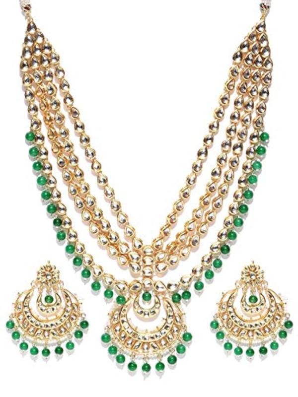 Elegant Kundan necklace set perfect for traditional weddings. Exquisite design and craftsmanship.