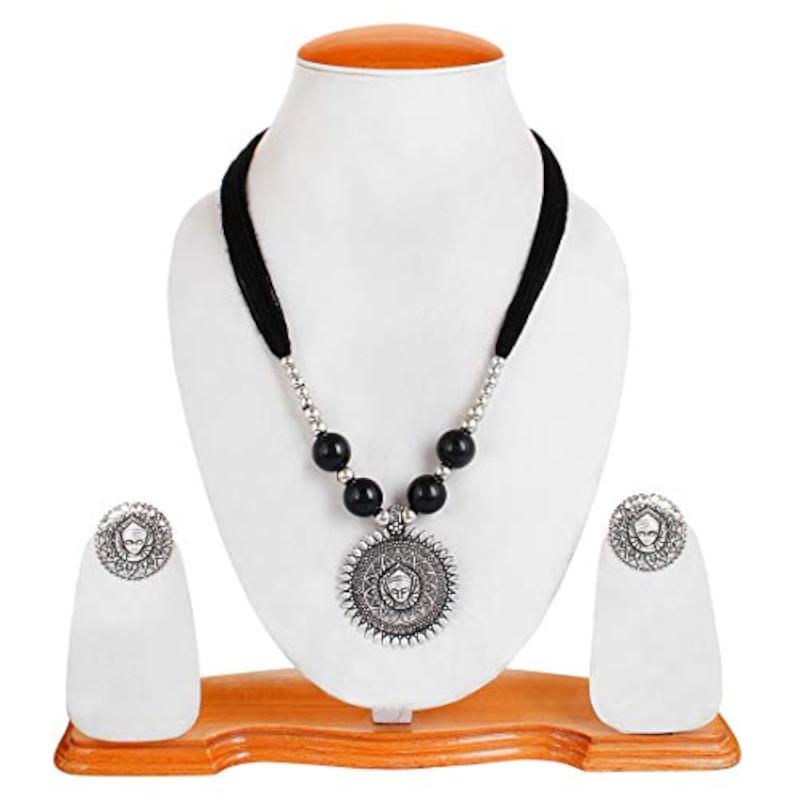 Antique oxidised tribal jewellery set made with cotton thread. Perfect for Valentine's.