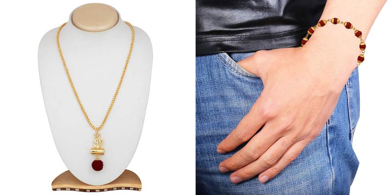 This combo includes a Trishul Om pendant with a 20-inch rope chain and a Rudraksha bracelet. Perfect for spiritual or daily wear.