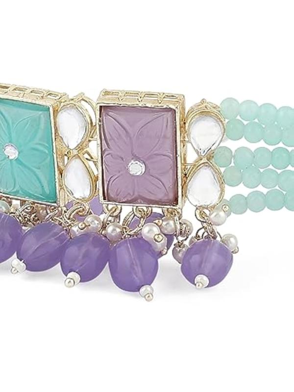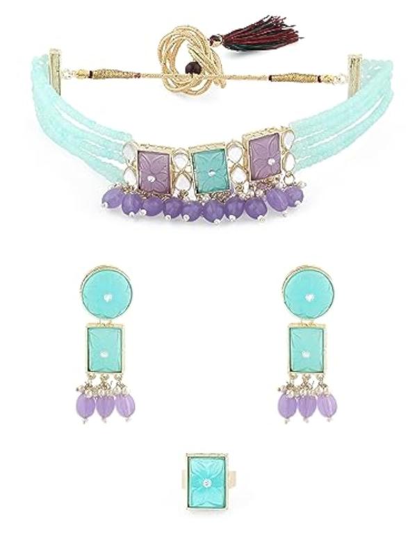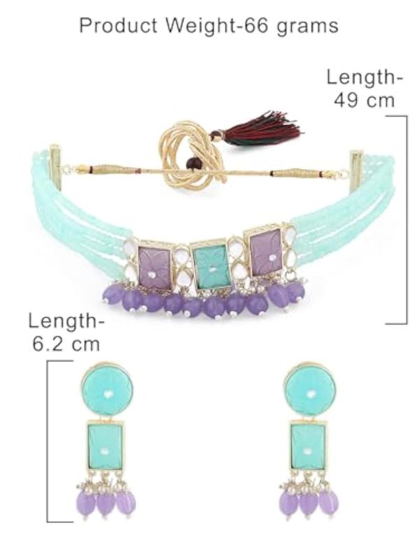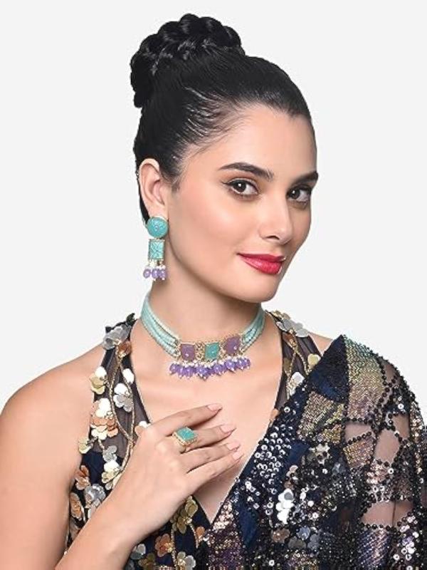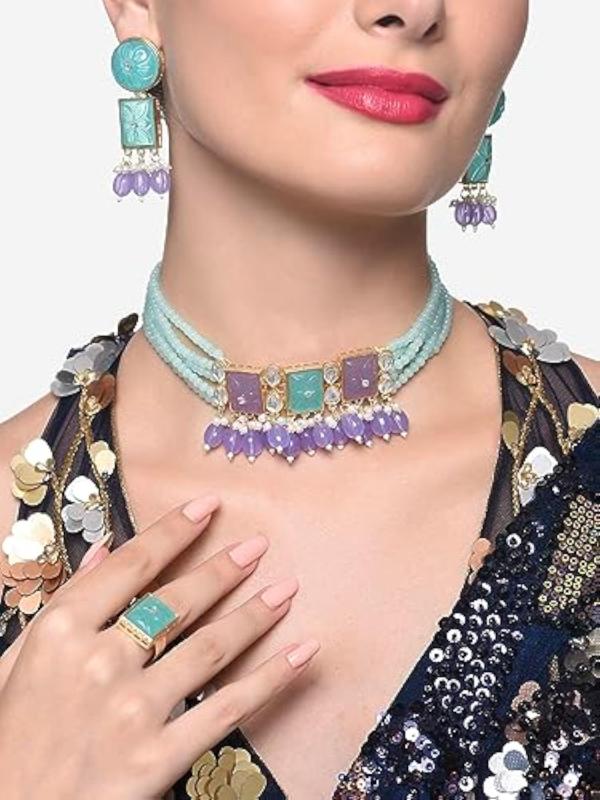 Complete your look with this stunning turquoise beaded multistrand choker necklace set. Perfect for women who love a bohemian chic style.