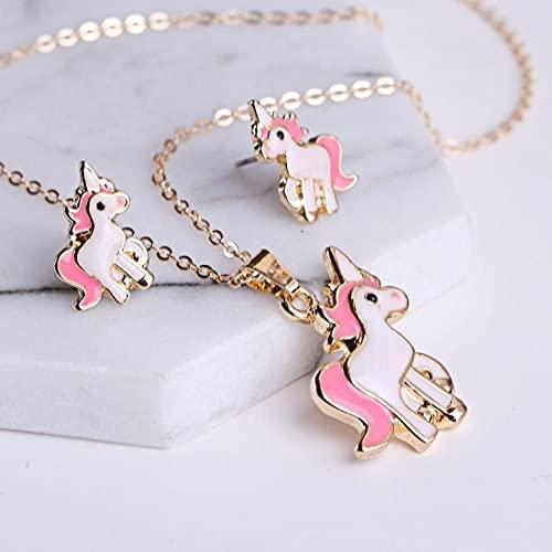 Adorable unicorn pendant necklace and stud earrings set designed for kids. The perfect gift for any unicorn lover.