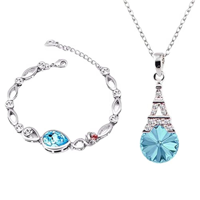 This elegant set includes a beautiful bracelet and Eiffel Tower pendant made of high-quality alloy with sparkling crystals. Perfect gift for Valentine's Day.