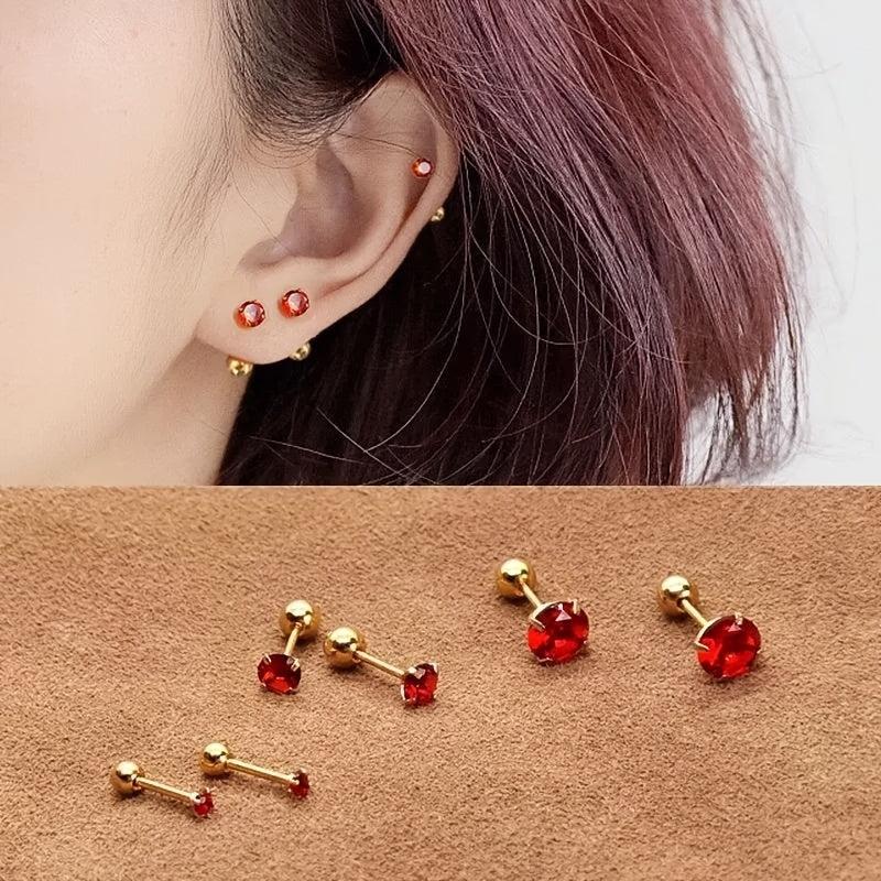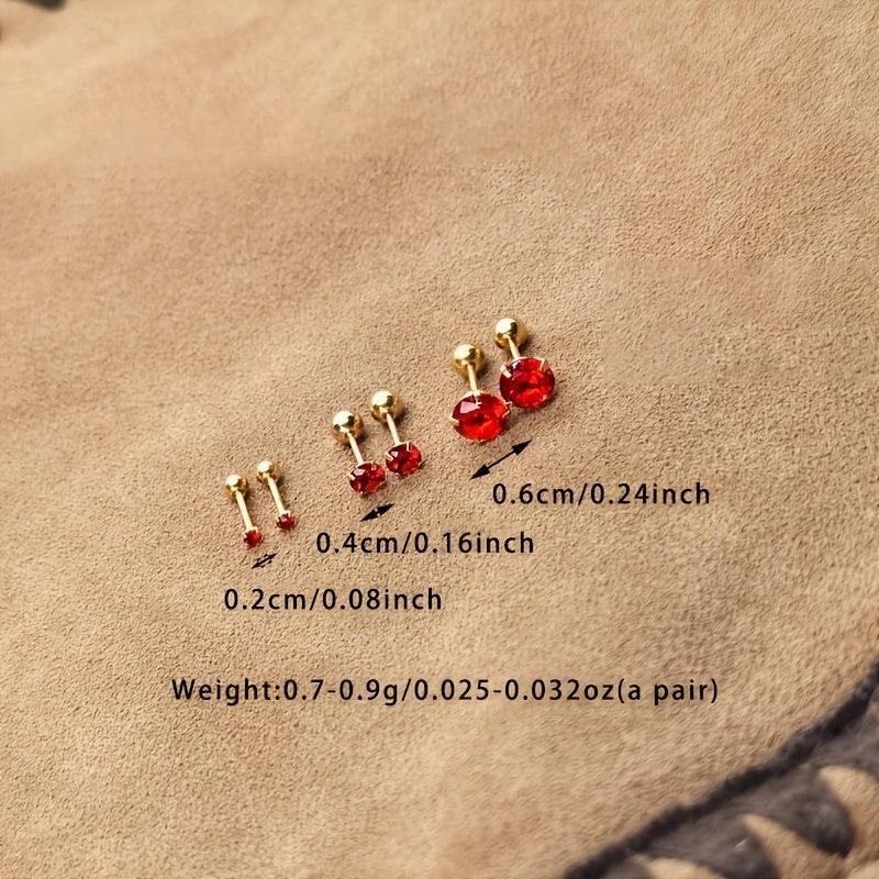 Add a pop of color to your summer outfits with these vintage-style stud earrings. Made from 925 sterling silver with red synthetic zirconia stones, these lightweight earrings are perfect for daily wear or as a Valentine's Day gift.