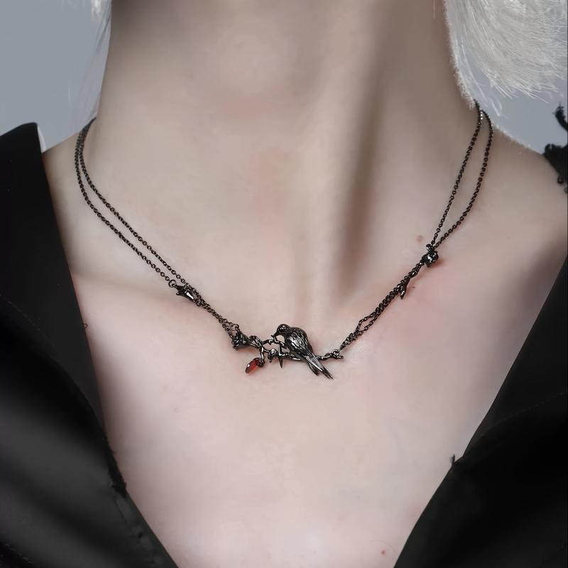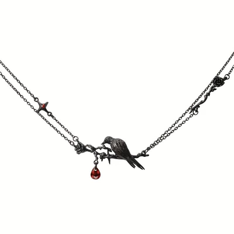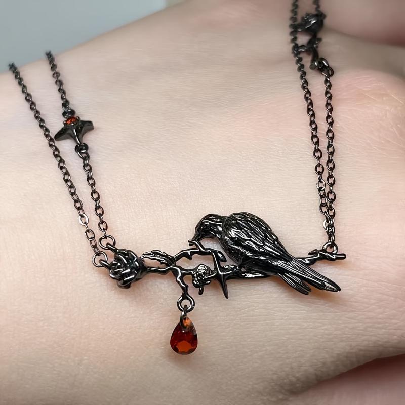 Add a touch of dark, gothic charm to your look with this vintage boho inspired pendant necklace featuring a spider and garnet gemstone. Made of durable alloy, this necklace is perfect for daily wear or special occasions.