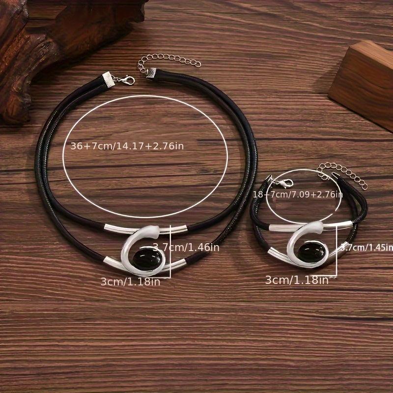 Add a touch of vintage charm to your look with this double layer rope necklace and bracelet set featuring an oval pendant design.