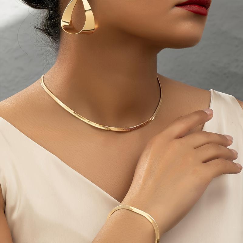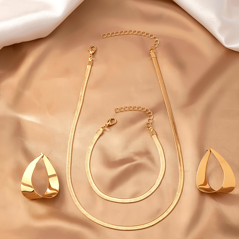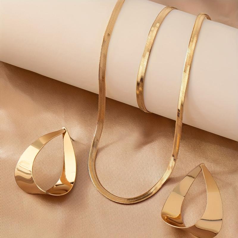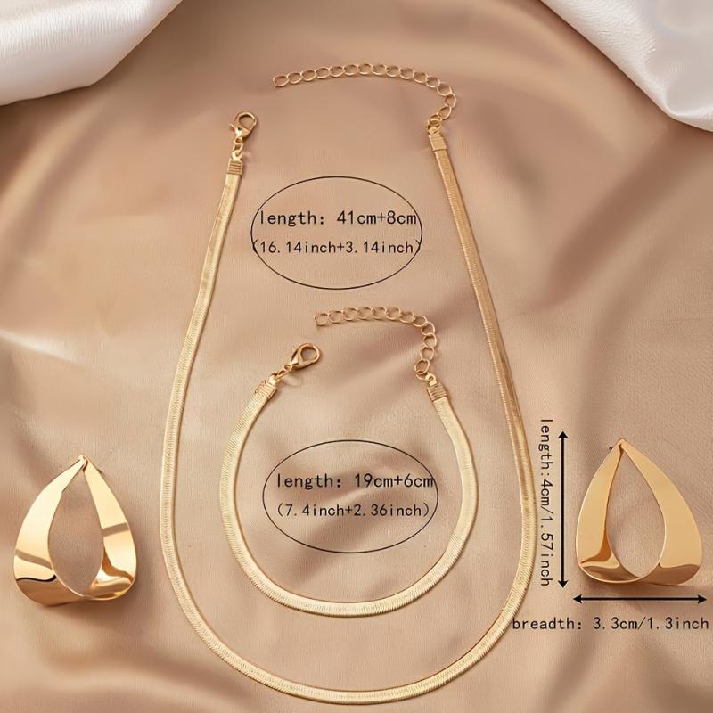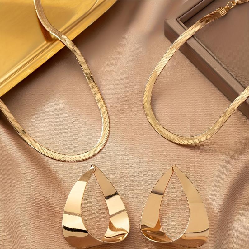 Elevate your everyday look with this vintage-style snake chain jewelry set that includes a pendant, earrings, necklace, and bracelet. Perfect for casual or special occasions.