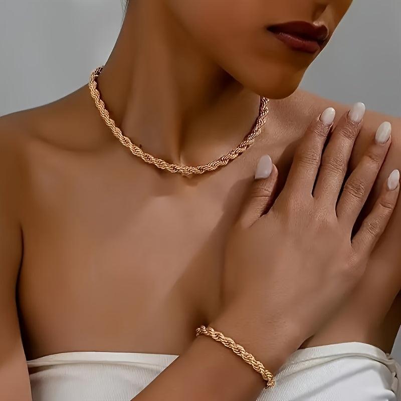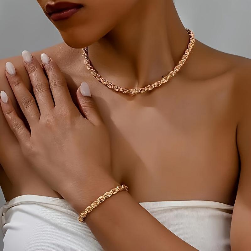 Elegantly designed vintage style iron twisted rope necklace and bracelet set perfect for daily wear or gifting. Crafted with fine attention to detail, this set adds a touch of antique charm to your outfit.