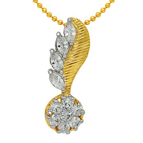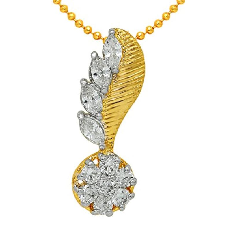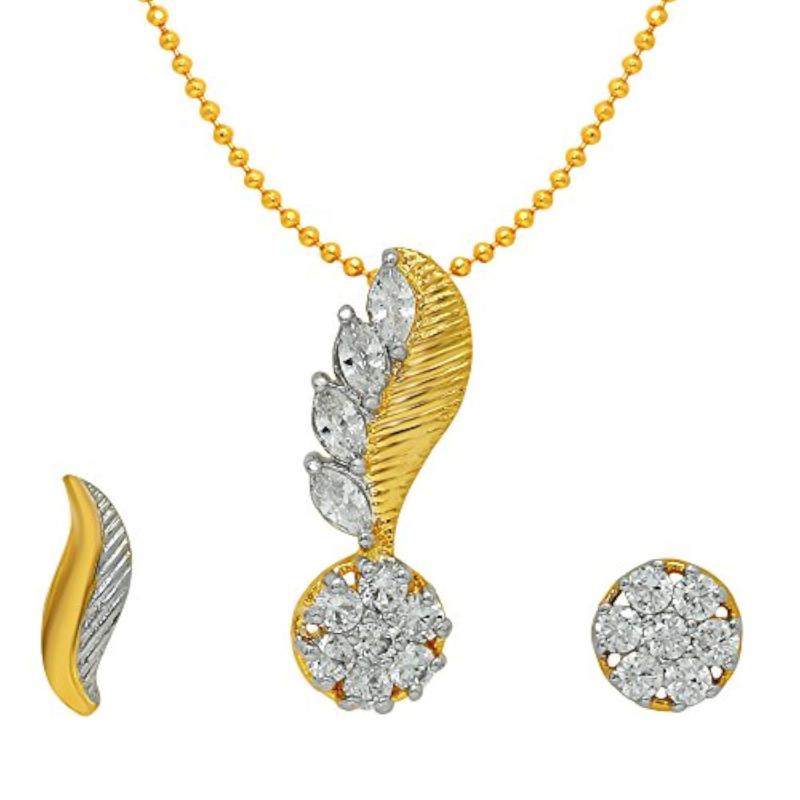 Elegant pendant set featuring mismatched round and marquise cubic zirconia stones in a wavy leaf design. Rhodium plated for a sleek finish.