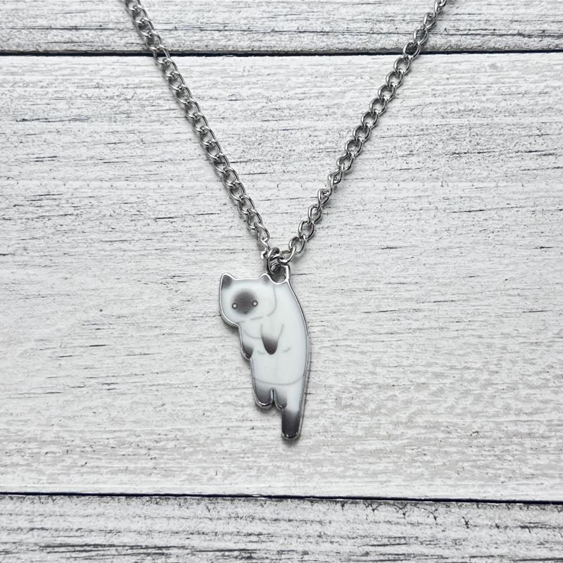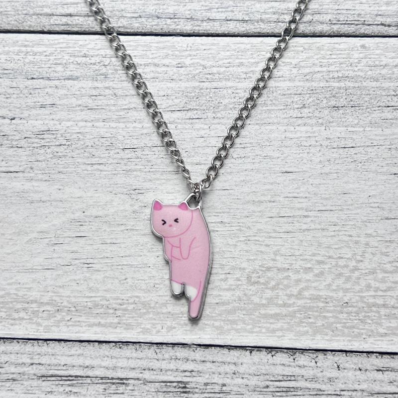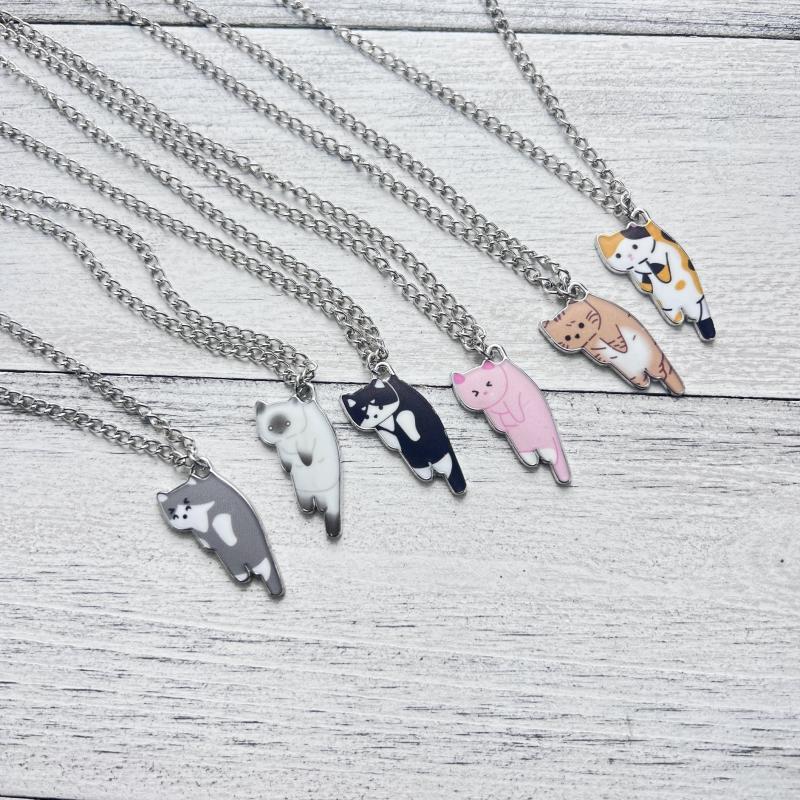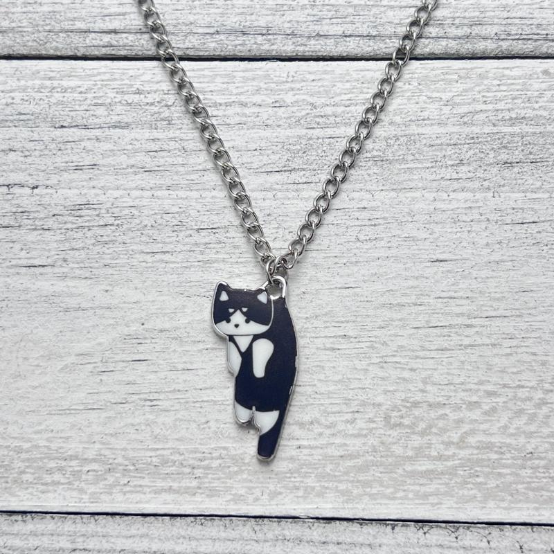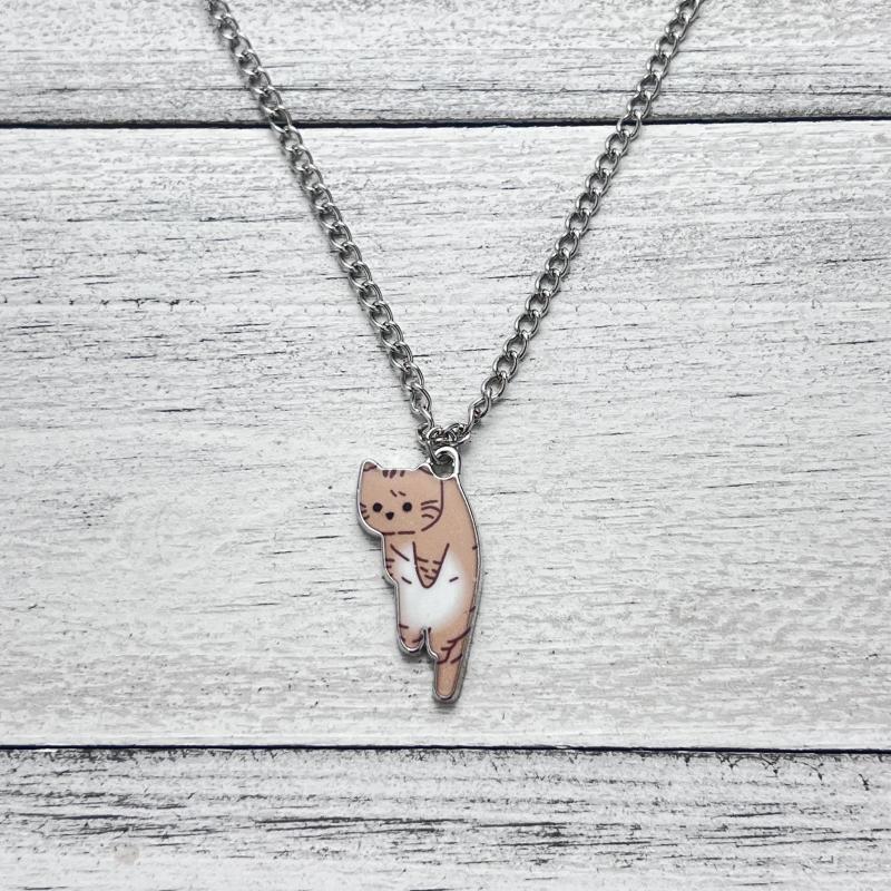 Adorable pendant necklace featuring a cute kitten charm and delightful animal print. This adjustable chain necklace is the perfect gift for cat and feline lovers.