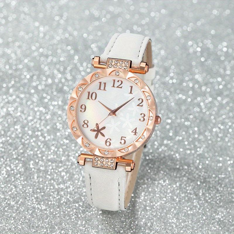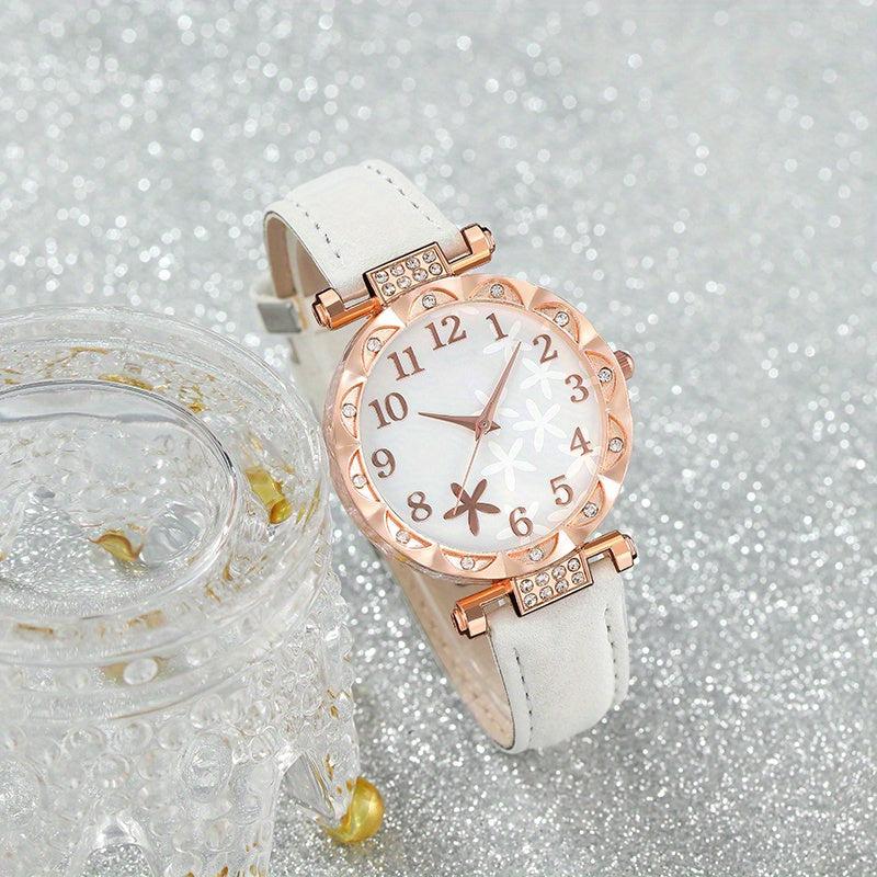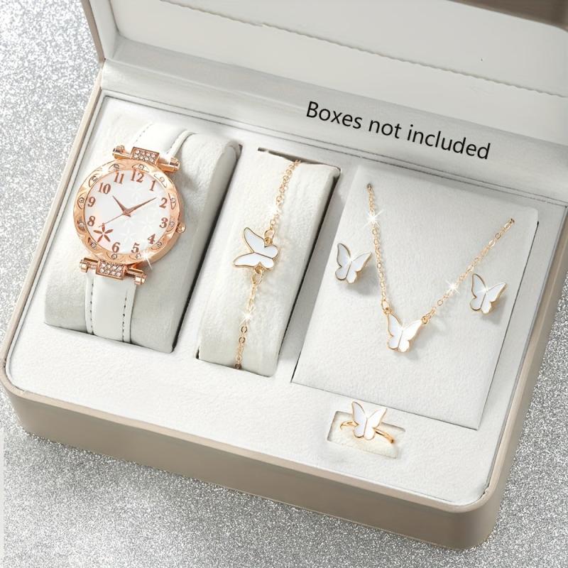 Elevate your style with this quartz watch and jewelry set, perfect for casual occasions and gifting. It exemplifies elegance and charm.