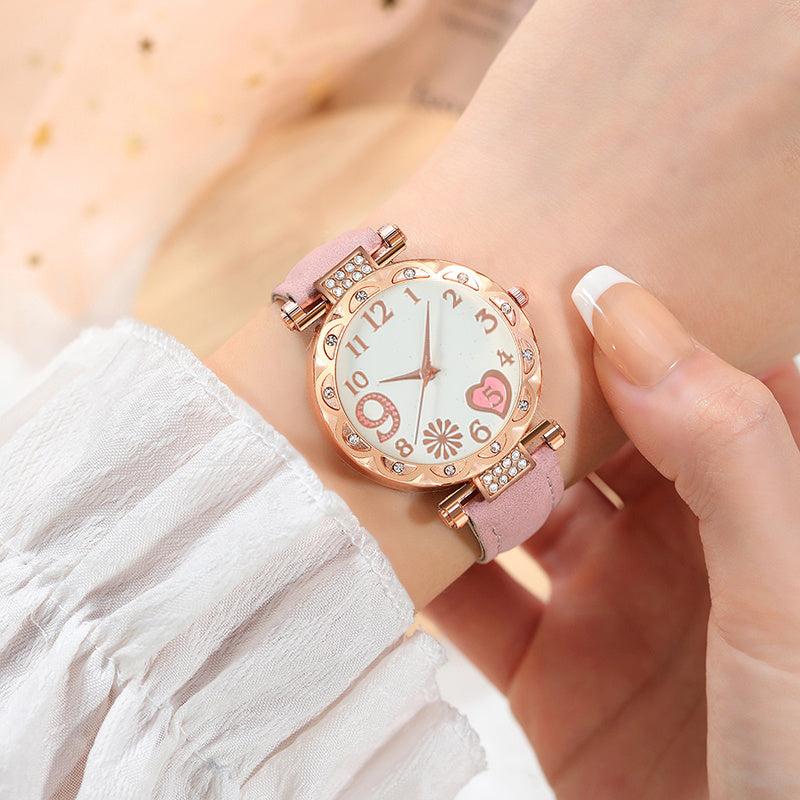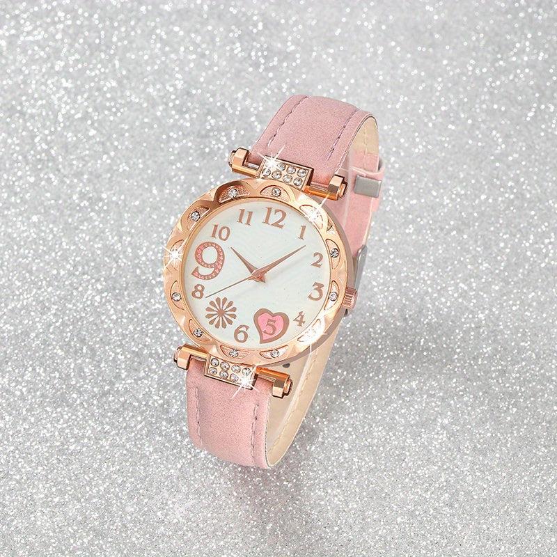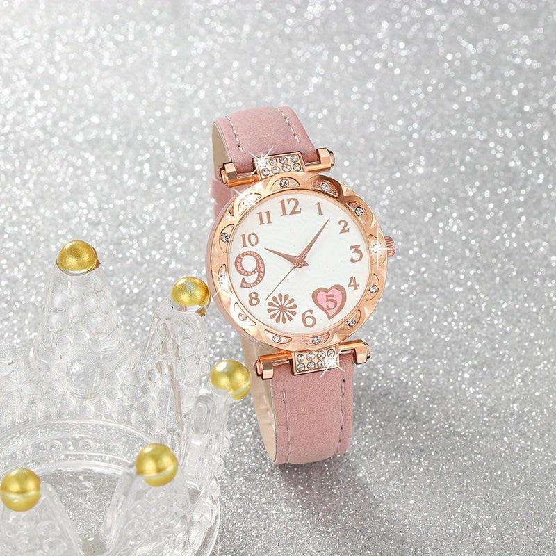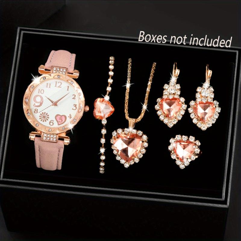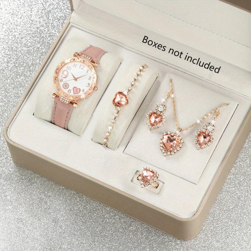 Elegant women's quartz watch accompanied by a set of 5 beautiful jewelry pieces. Perfect for adding a touch of glamour to any outfit.