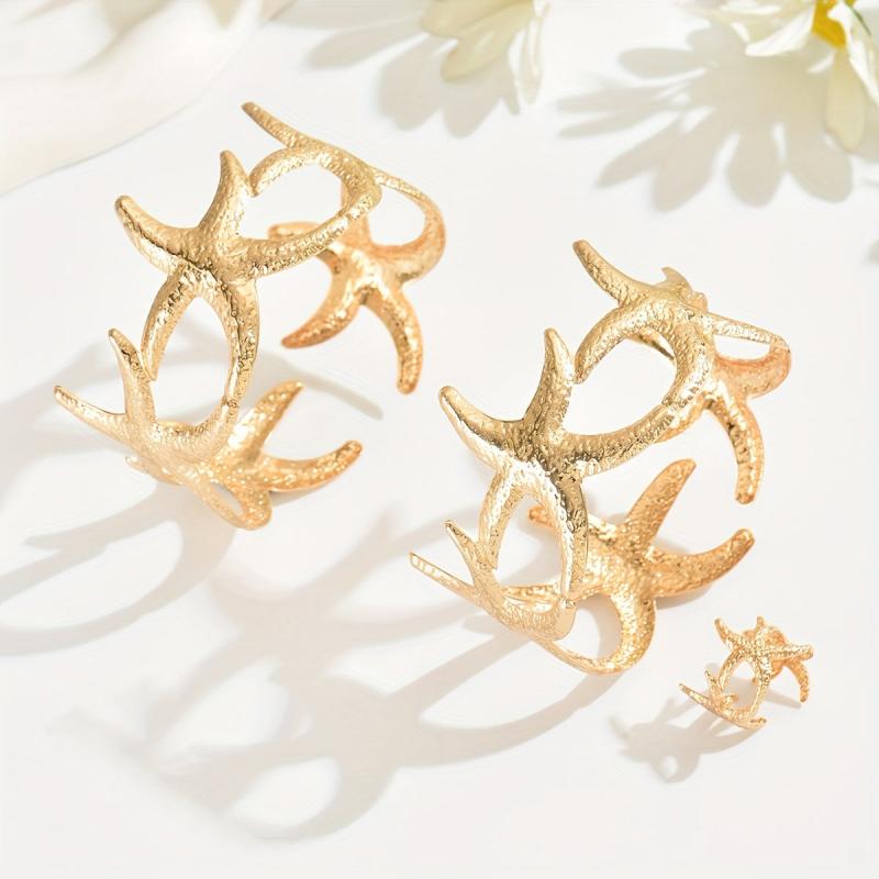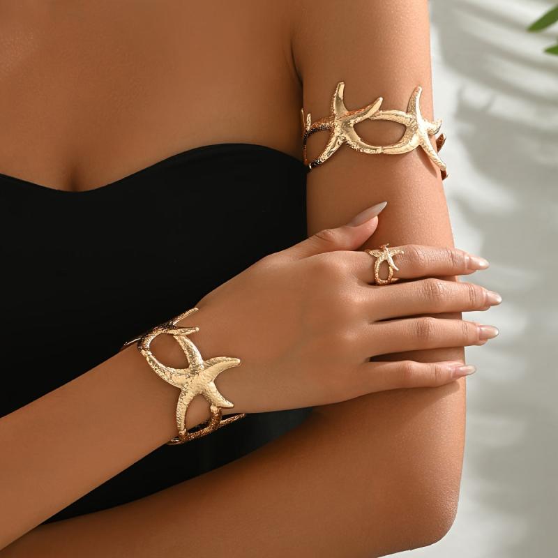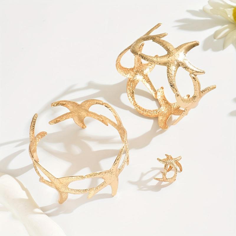Women's Starfish Bracelet Bangle & Ring Set for Summer Beach Wear