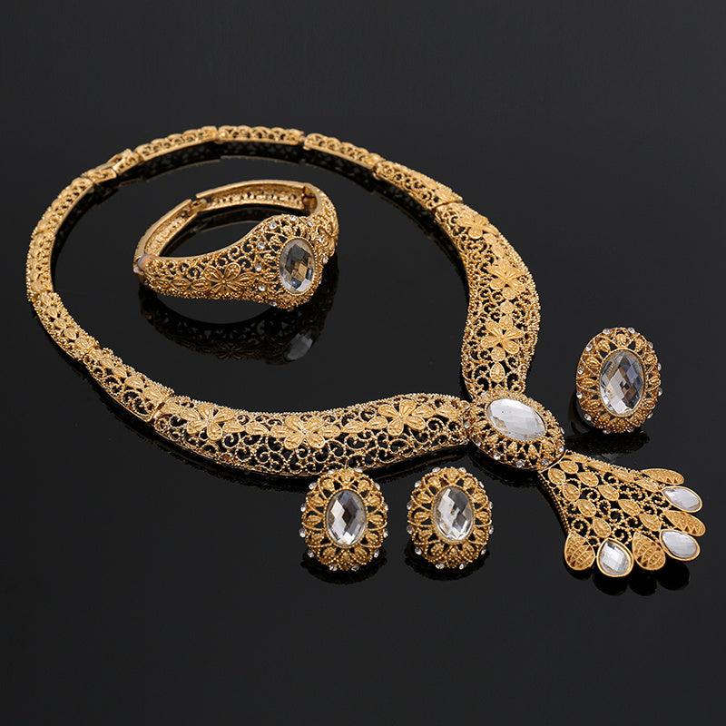 This stunning jewelry set includes a pair of starry night earrings, a matching necklace, and a bracelet, all adorned with sparkling rhinestones. Perfect for parties, festivals, weddings, and celebrations.