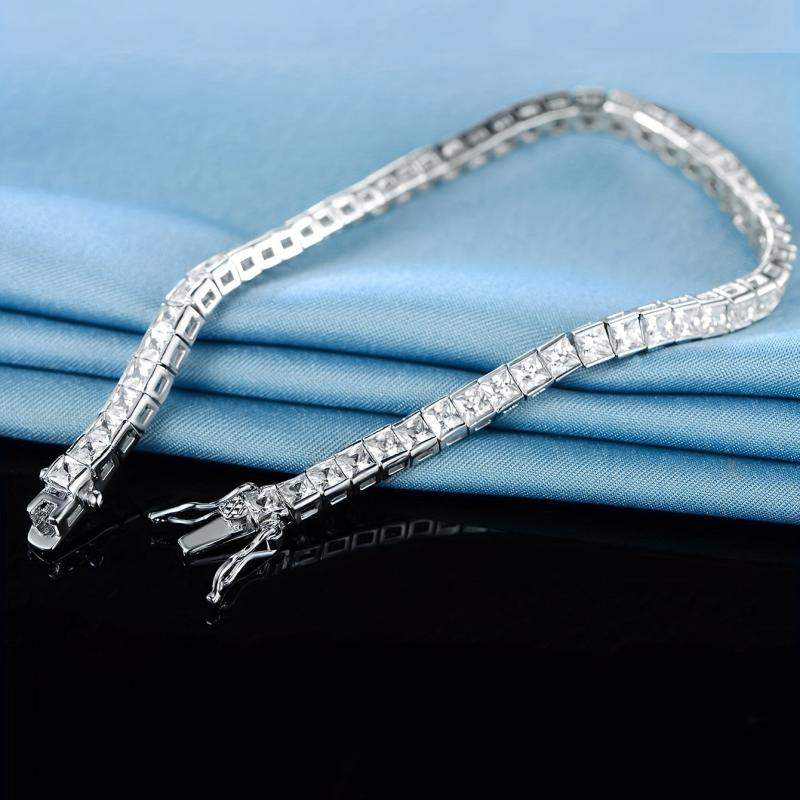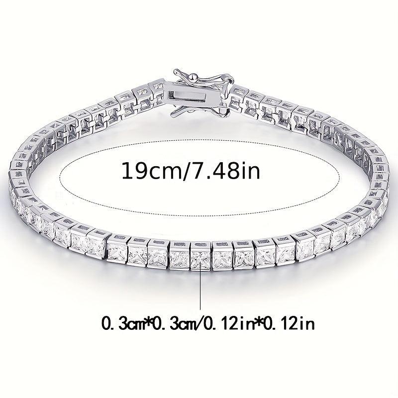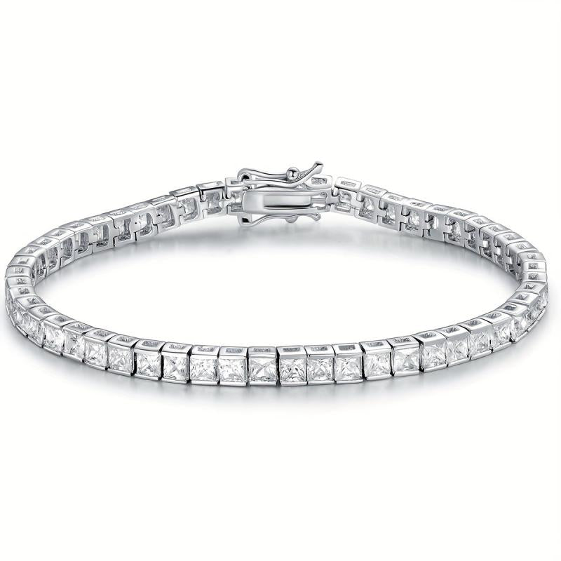 Enhance your style with this stunning square zircon tennis bracelet that adds a touch of elegance and sophistication to any outfit.