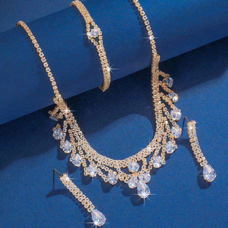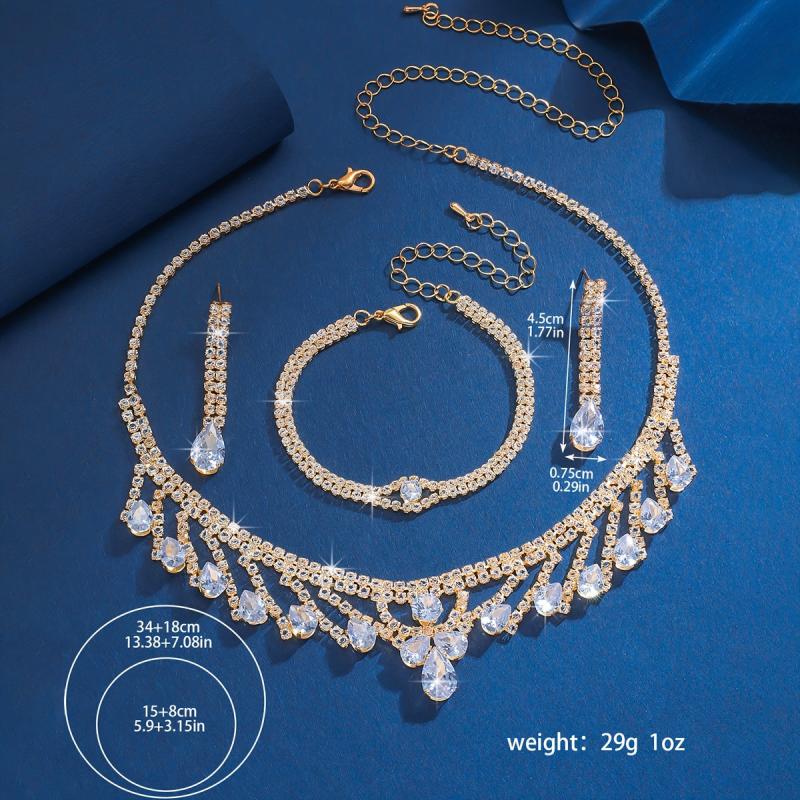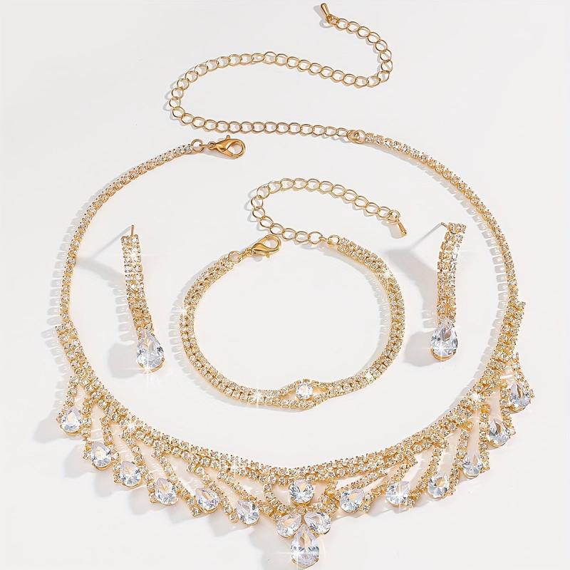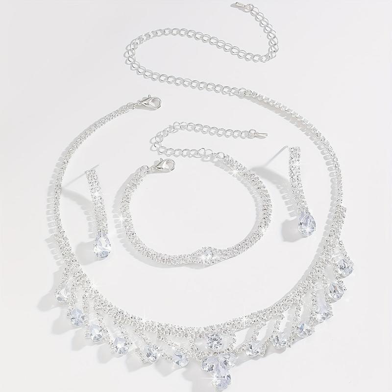 Complete your prom dress look with this elegant 3-piece jewelry set featuring synthetic zirconia. Includes a necklace, earrings, and bracelet. Perfect gift for any special occasion.