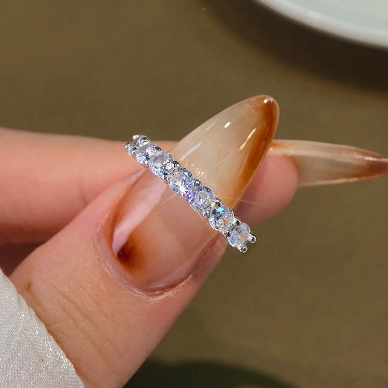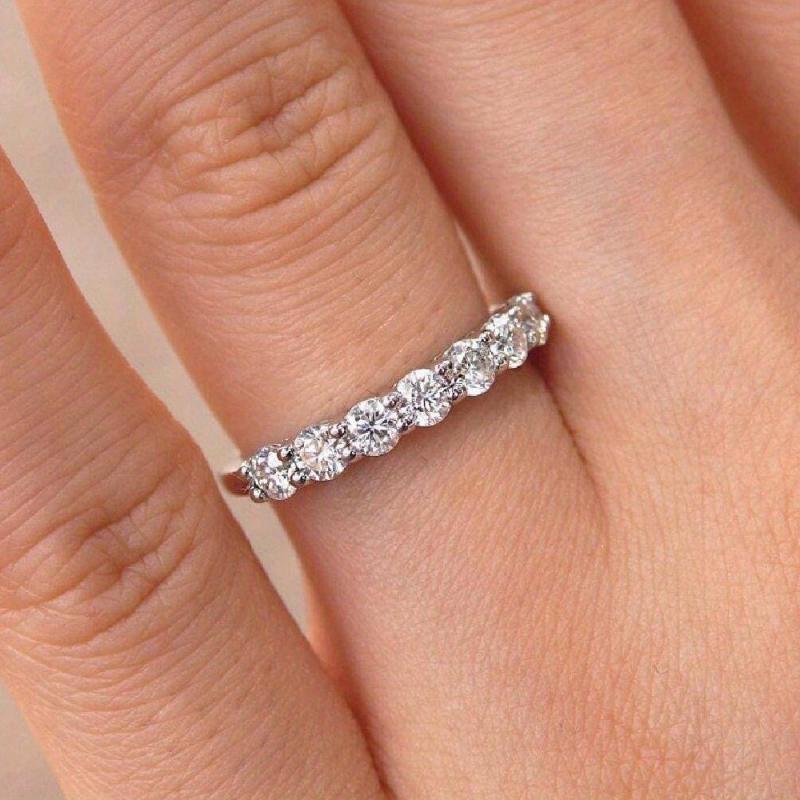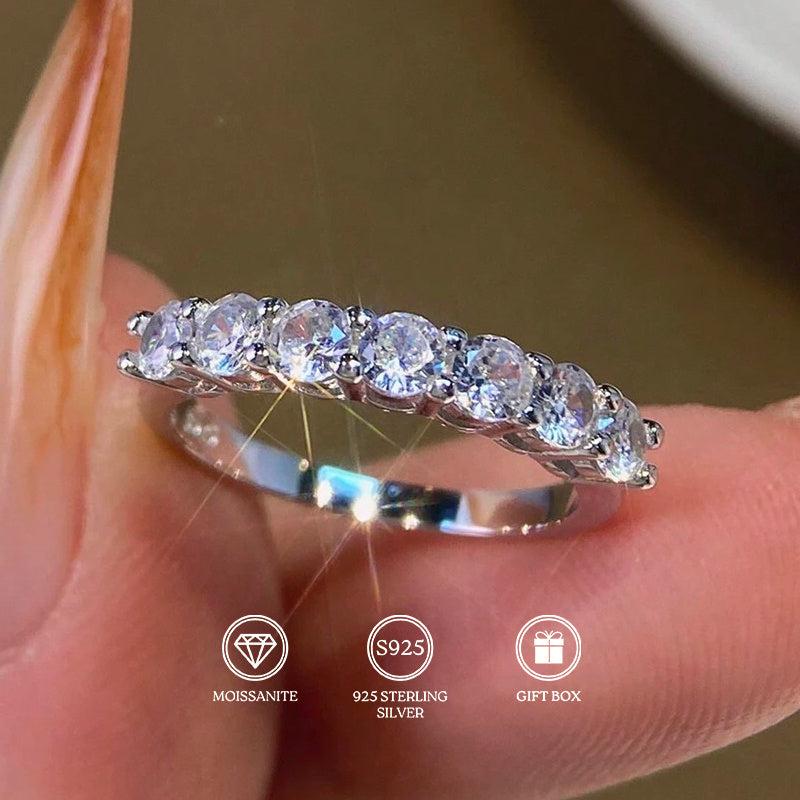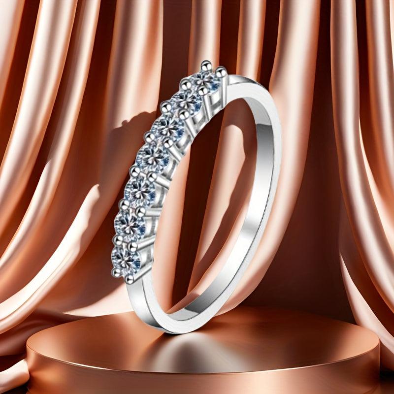 Make a statement with this elegant 0.7 carat Moissanite engagement ring. Featuring a 7 stone setting, this ring is perfect for weddings and parties, adding a touch of sophistication to any outfit.