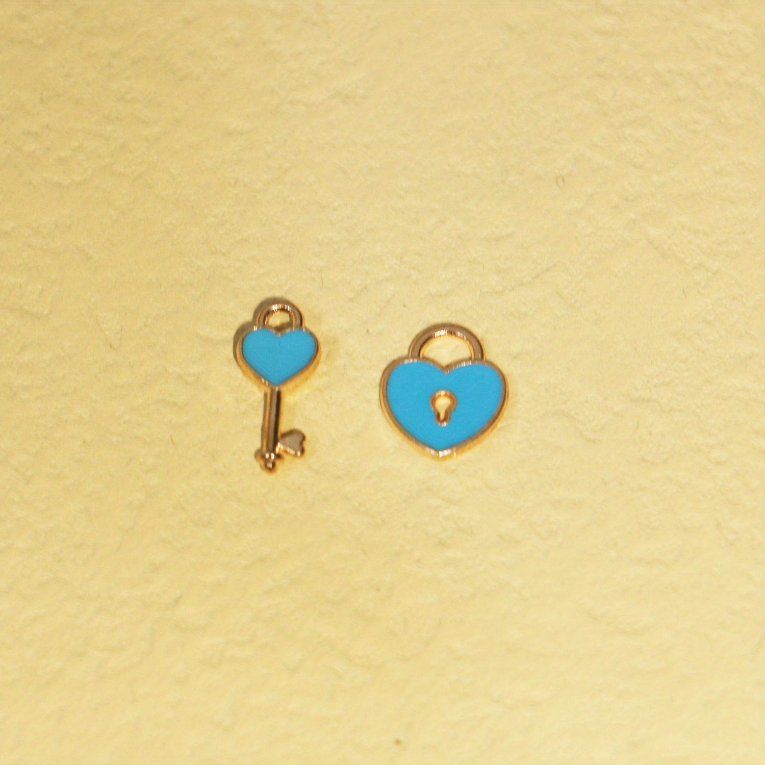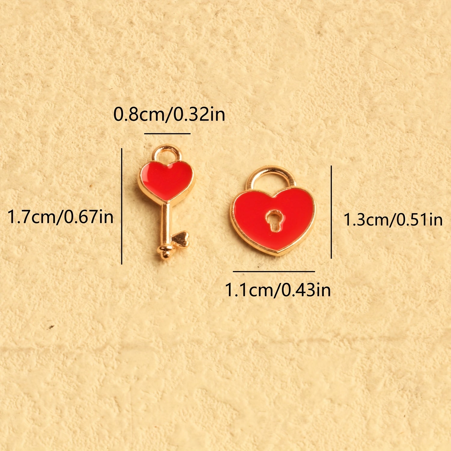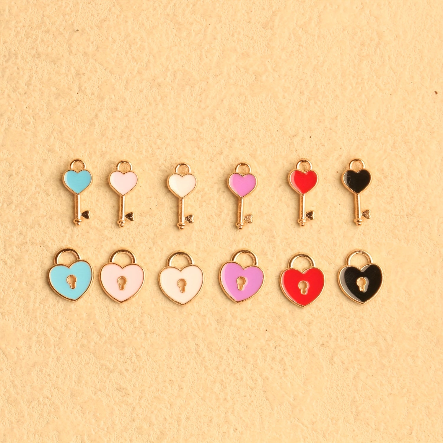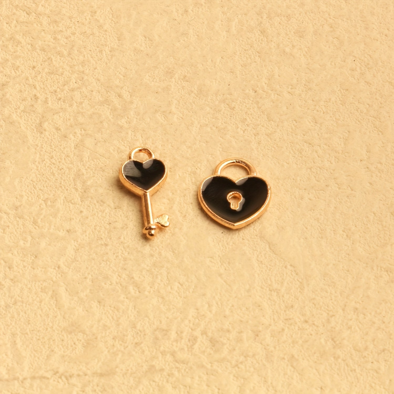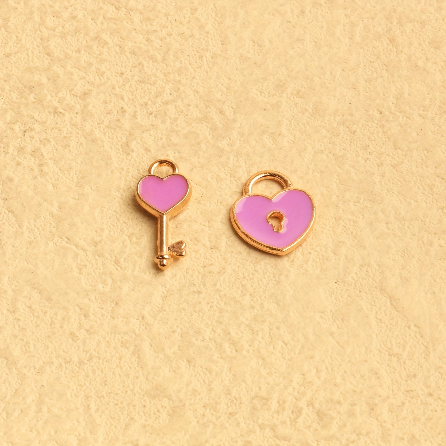 Craft charming jewelry pieces with these heart lock key charms. Perfect for earrings, necklaces, and bracelets, these plated enamel pendants add a romantic touch to your creations.