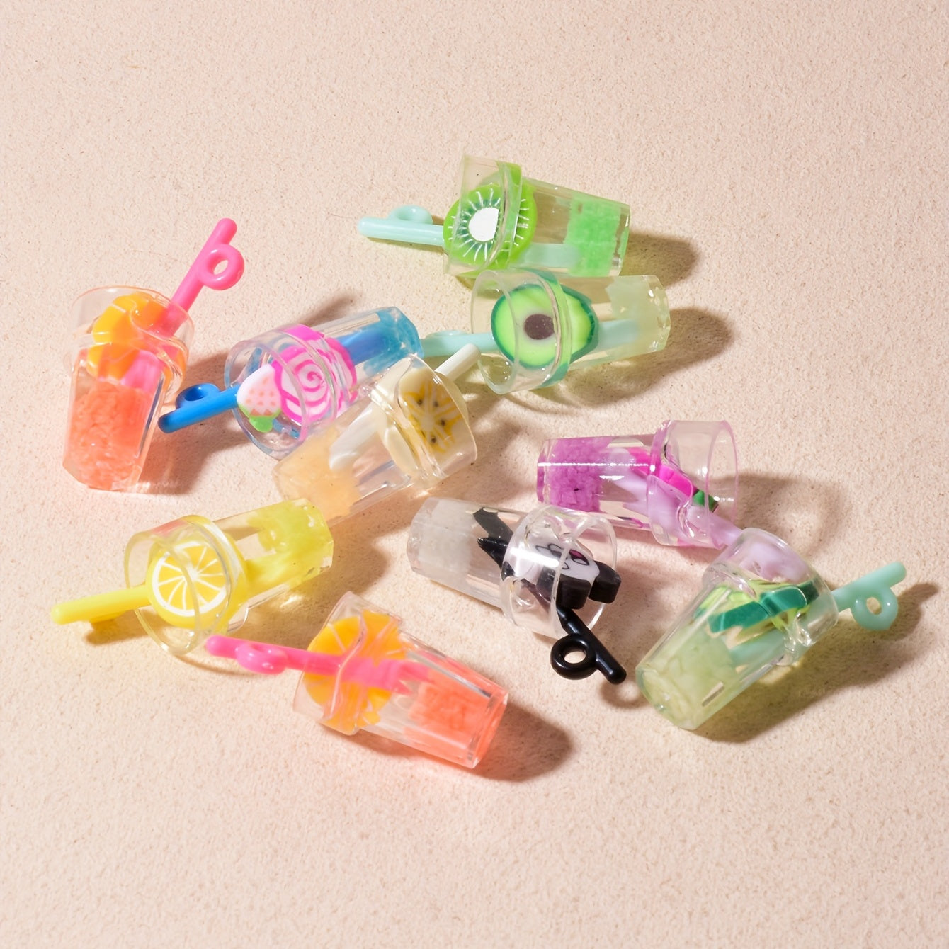 Add a fun twist to your DIY jewelry with these glow-in-the-dark cartoon drink cup charms. Perfect for earrings, bracelets, or keychains.