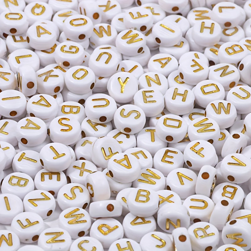 Create custom bracelets and necklaces with these round flat spacer beads in assorted letter patterns. Perfect for DIY projects.