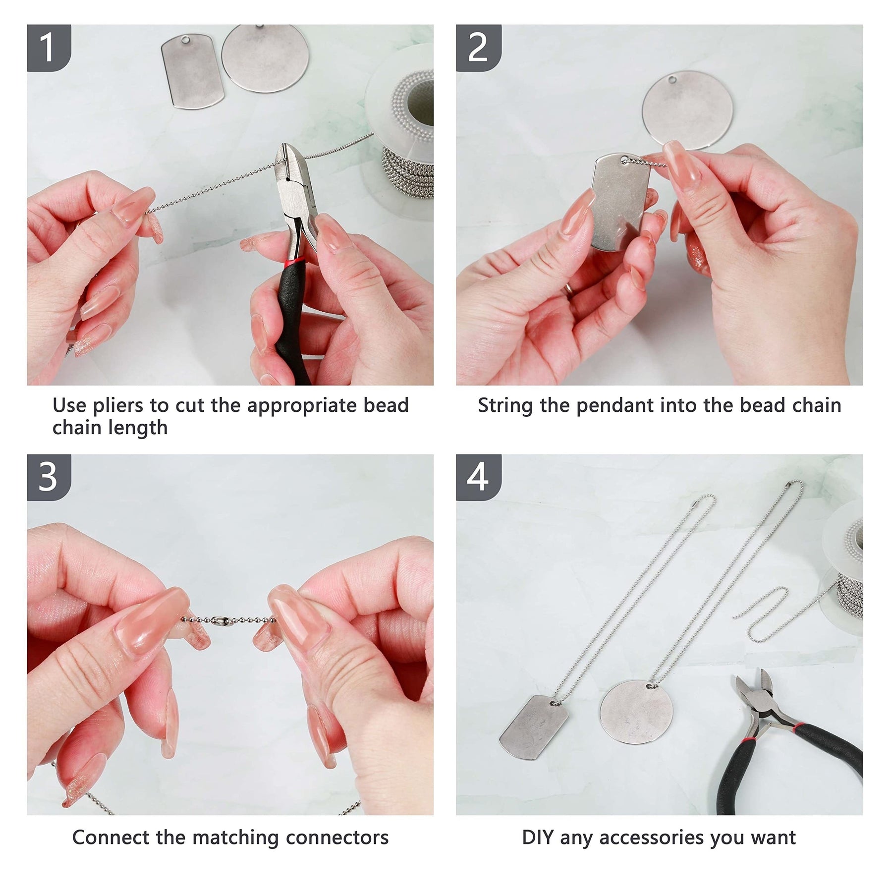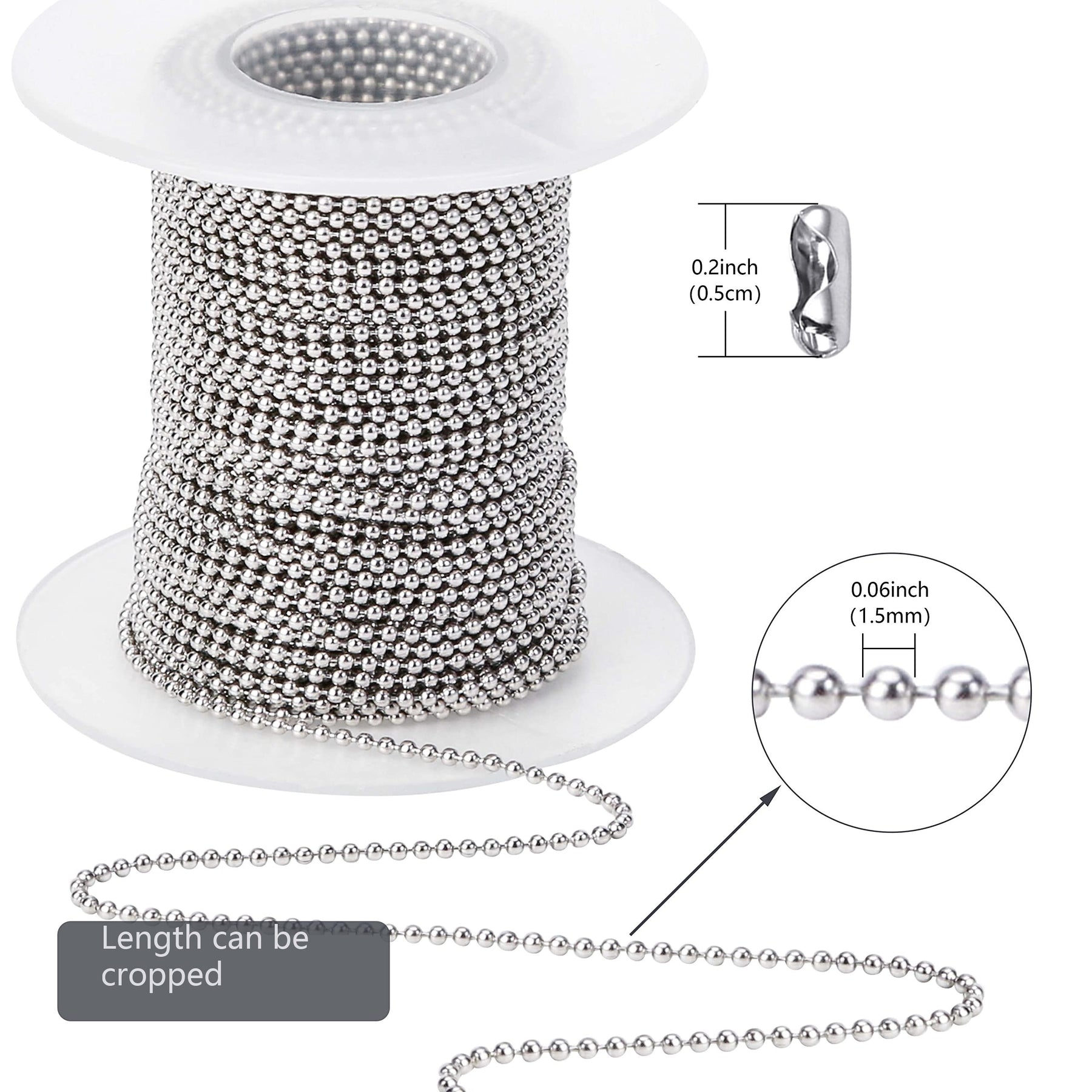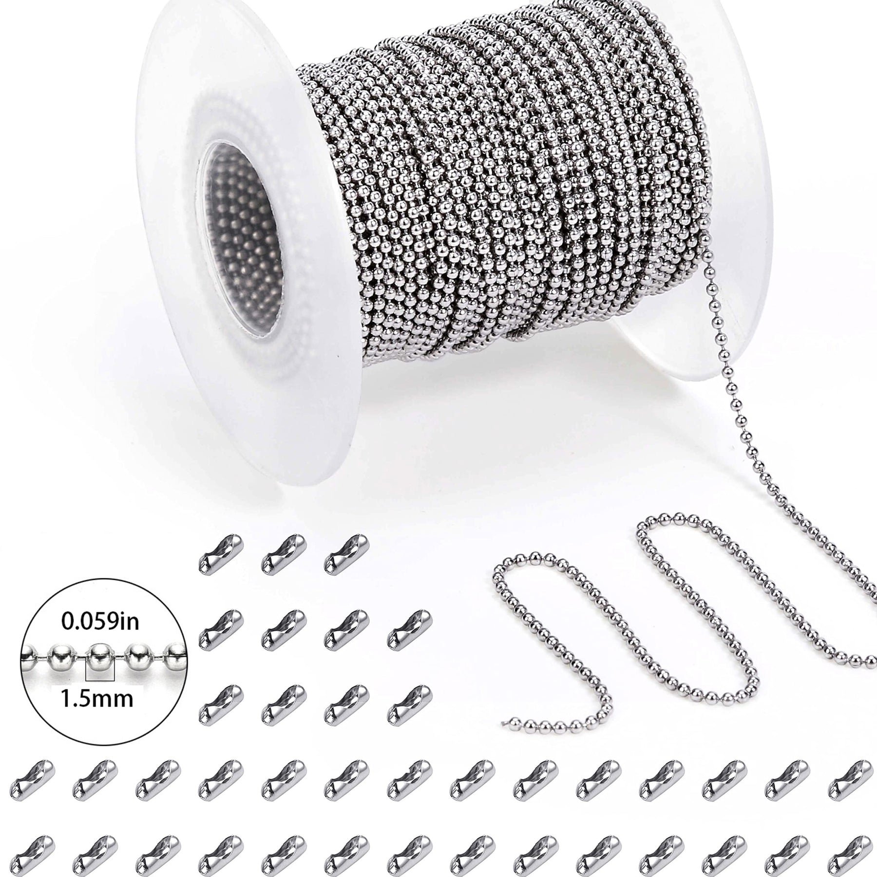 High-quality stainless steel bead chain material perfect for making keychains, bracelets, and necklaces. Comes with 100pcs connectors. Chain diameter 0.06in.