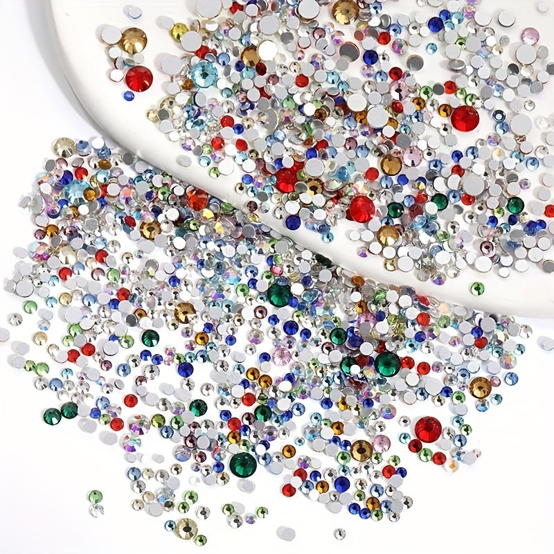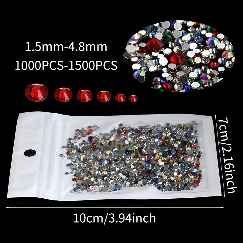Get a pack of 1000PCS or 1500PCS of size 1.5mm to 4.8mm mixed nail drill flat bottom crystal glass drill for mobile phone, earphone, DIY sticker, dress, clothing accessories.