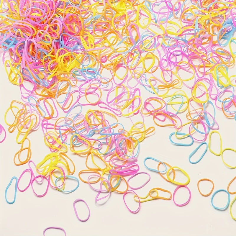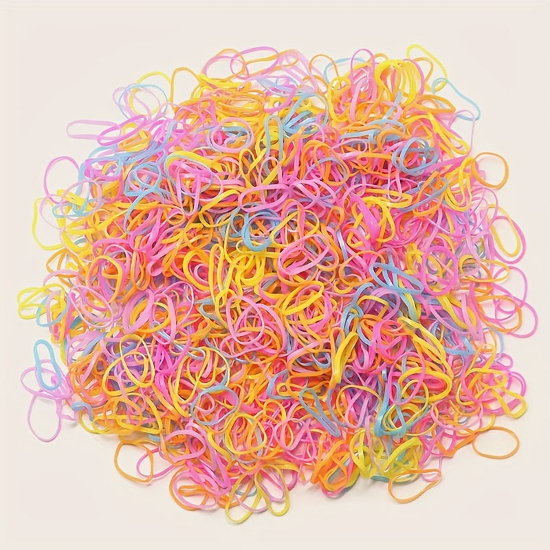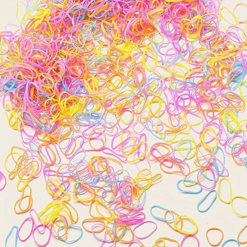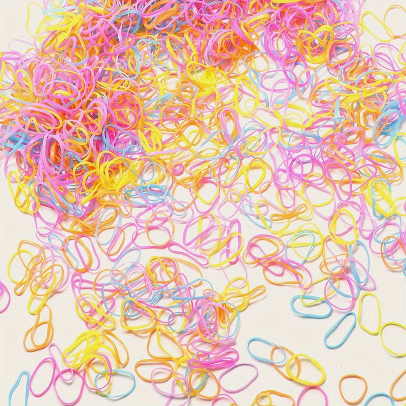 Get this set of 1000 colorful disposable rubber bands for girl's hair decoration. Perfect for creating various hairstyles.