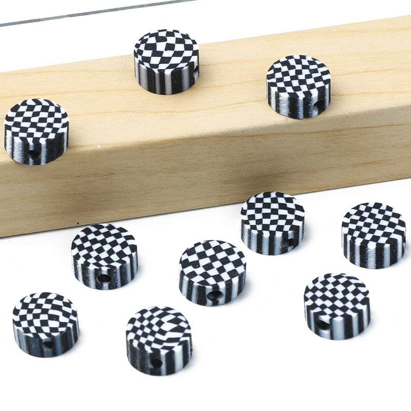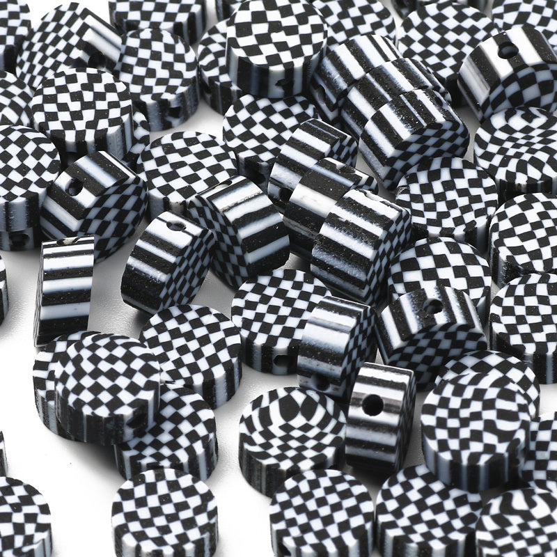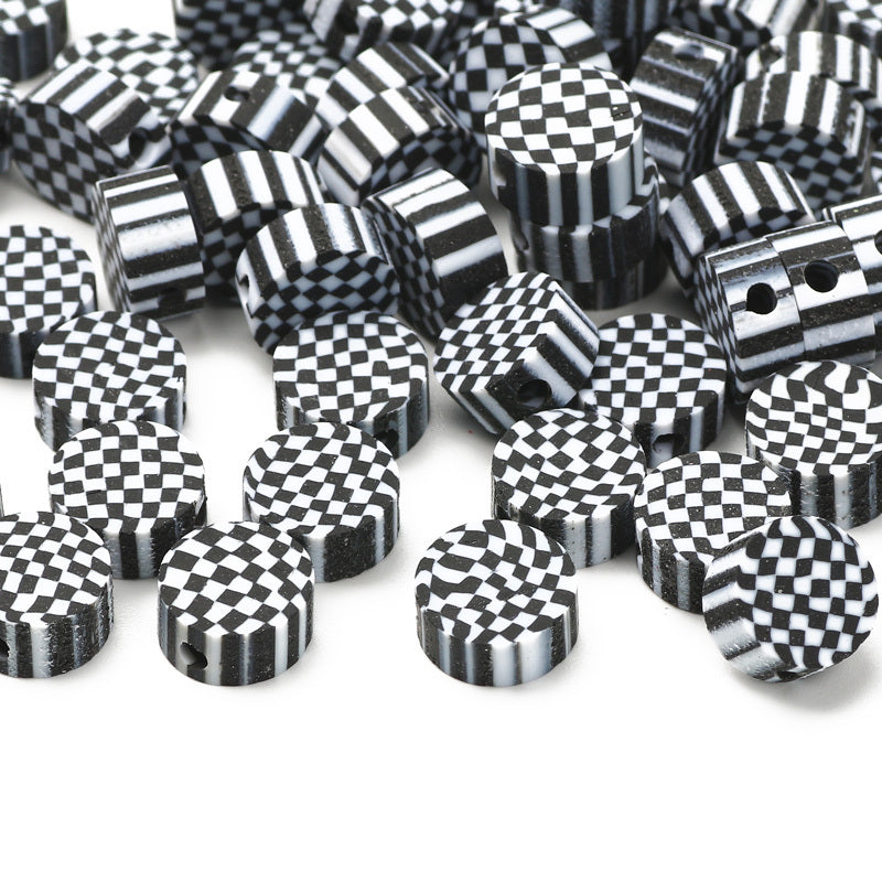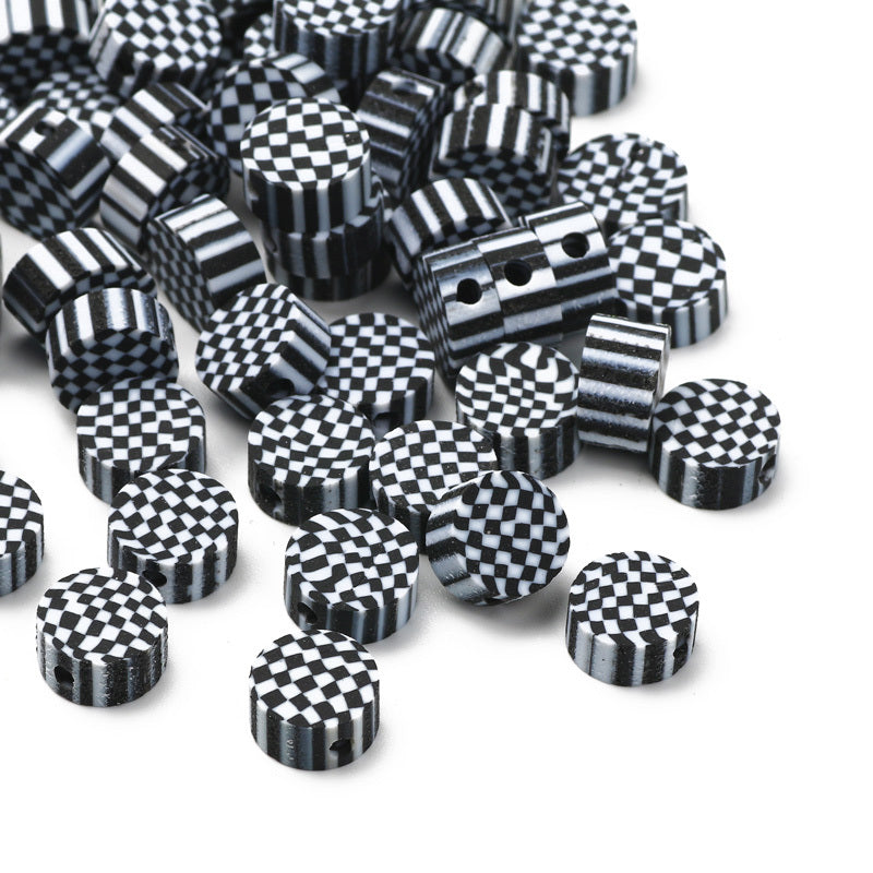 Create stunning jewelry pieces with these checkerboard pattern polymer clay beads. Perfect for bracelets, necklaces, and DIY crafts.