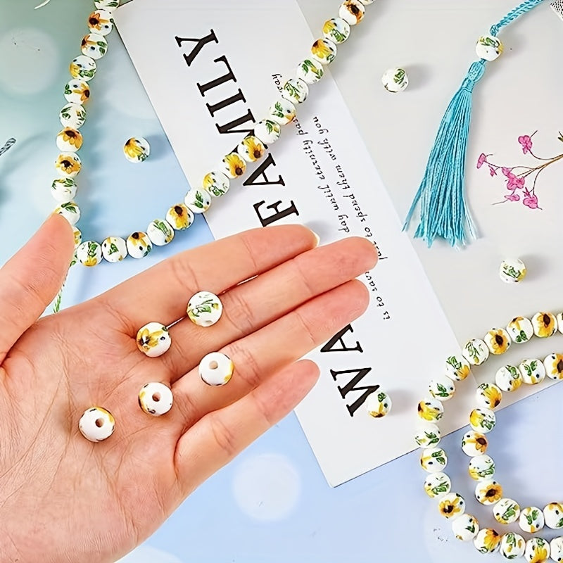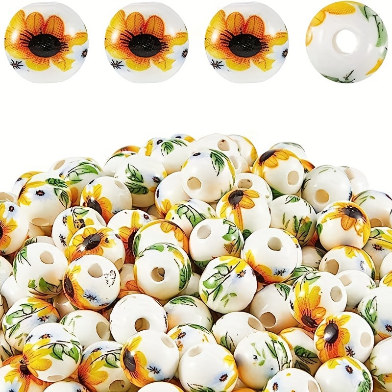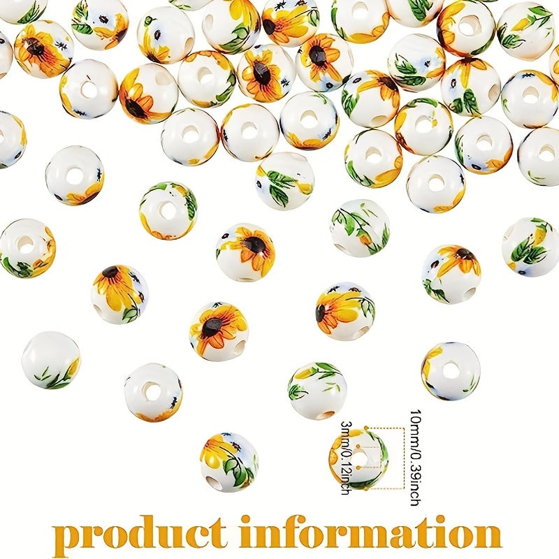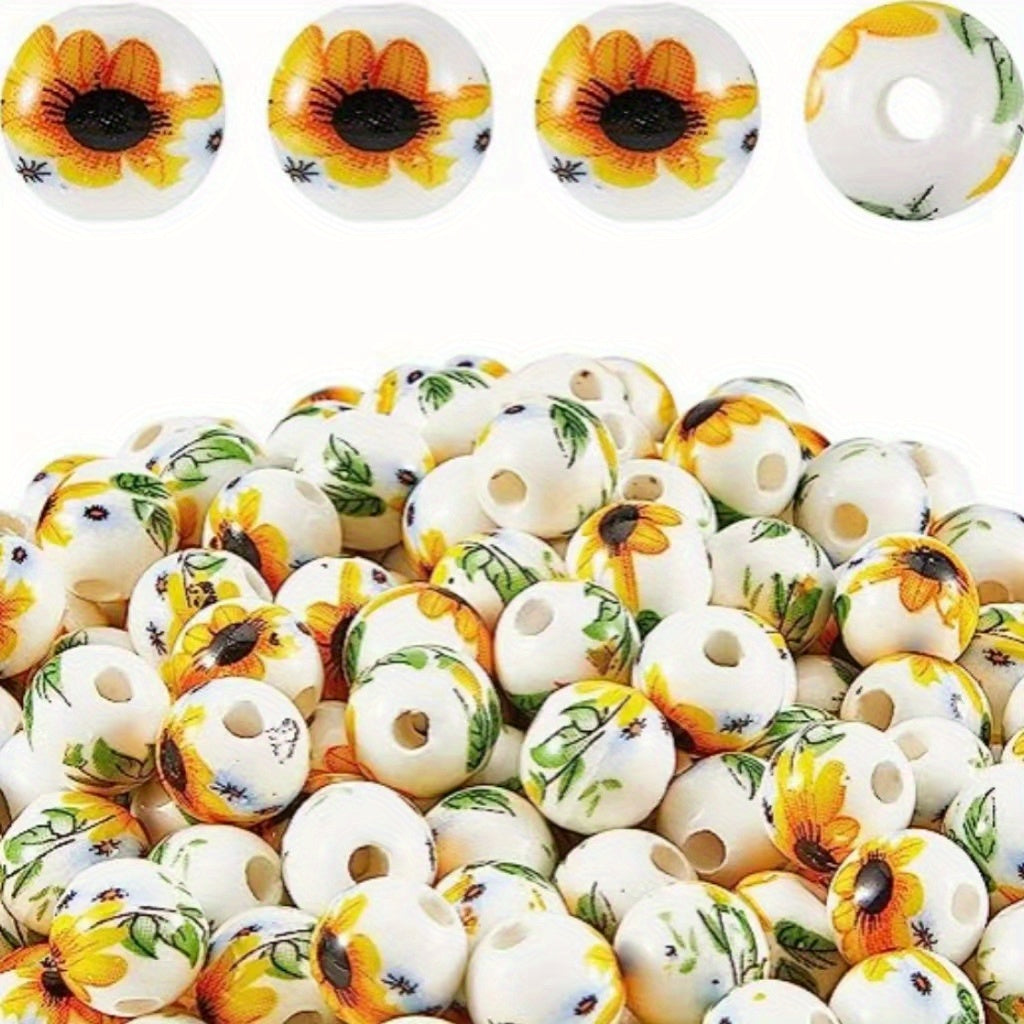 Create beautiful jewelry with these sunflower pattern round ceramic beads. Perfect for DIY bracelets and necklaces.