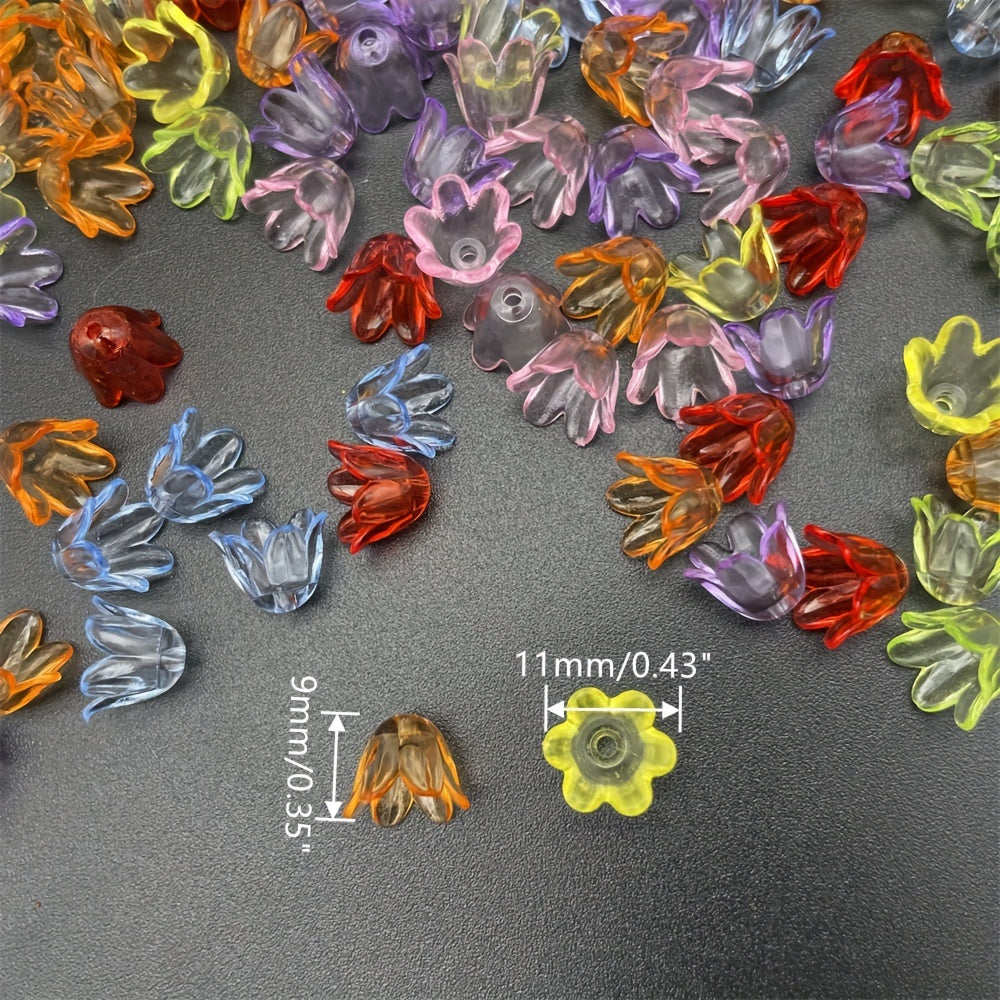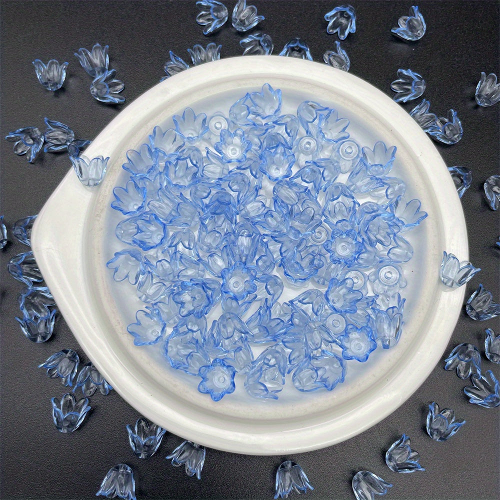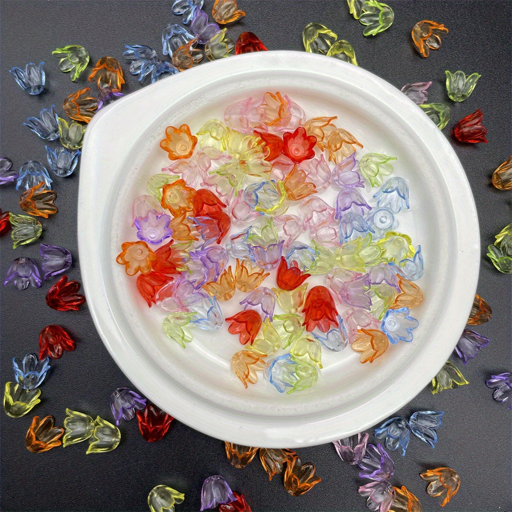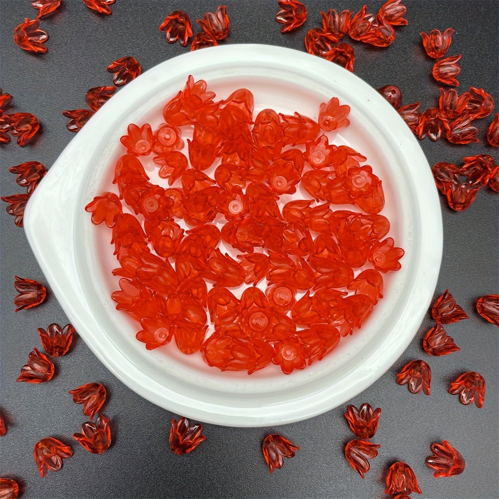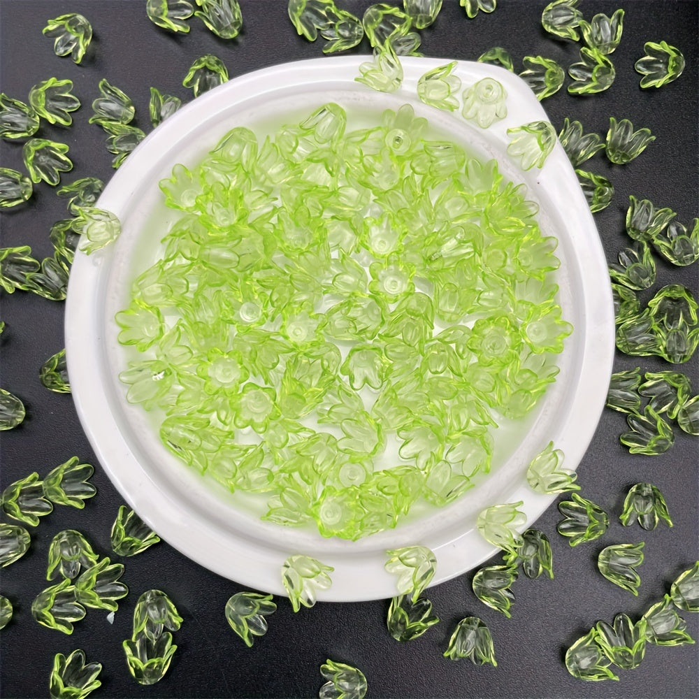 Add a touch of elegance to your DIY jewelry projects with this pack of 100 acrylic flower beads. Each bead measures 11x9mm and features a beautiful lily of the valley design. Perfect for creating stunning handmade jewelry.
