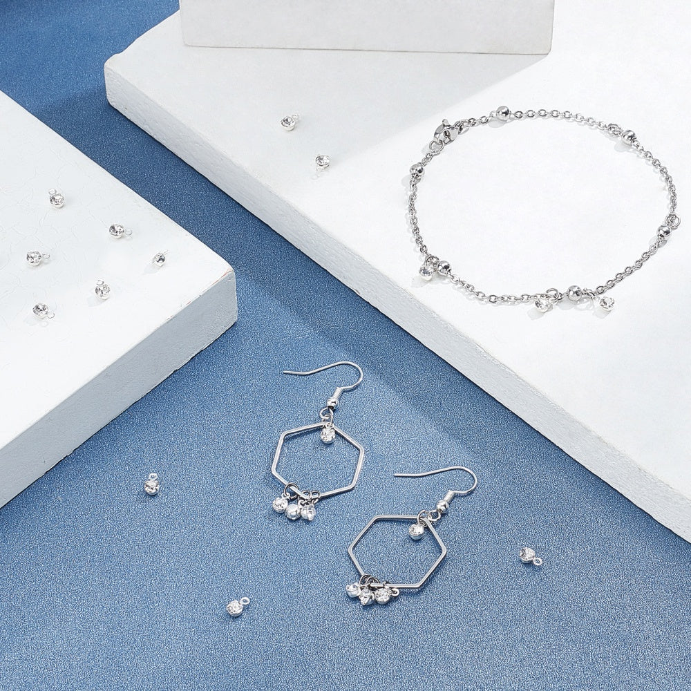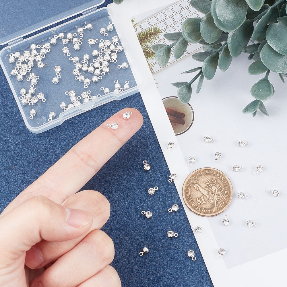 Add a touch of sparkle to your DIY jewelry projects with these 3mm rhinestone decor charms. Perfect for creating earrings, bracelets, necklaces, chokers, and anklets.