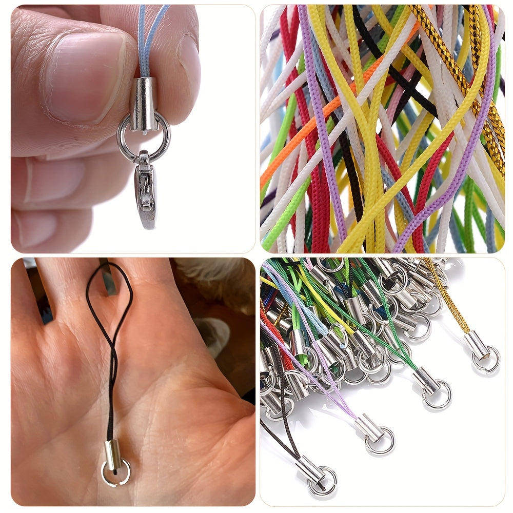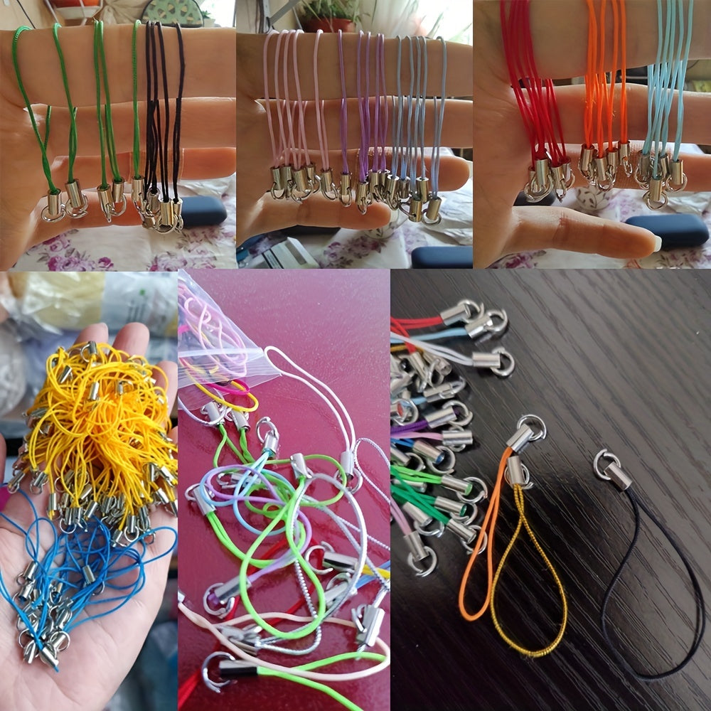 This pack includes 100 multicolor ropes, perfect for making your own keychains, mobile phone charms, or pen straps.