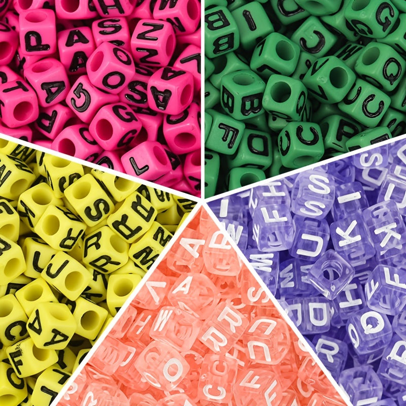 Get a pack of 100 colorful English letter beads for your DIY beading projects. These 6mm acrylic square beads feature large holes, perfect for various crafts.