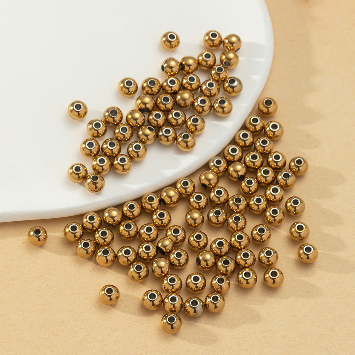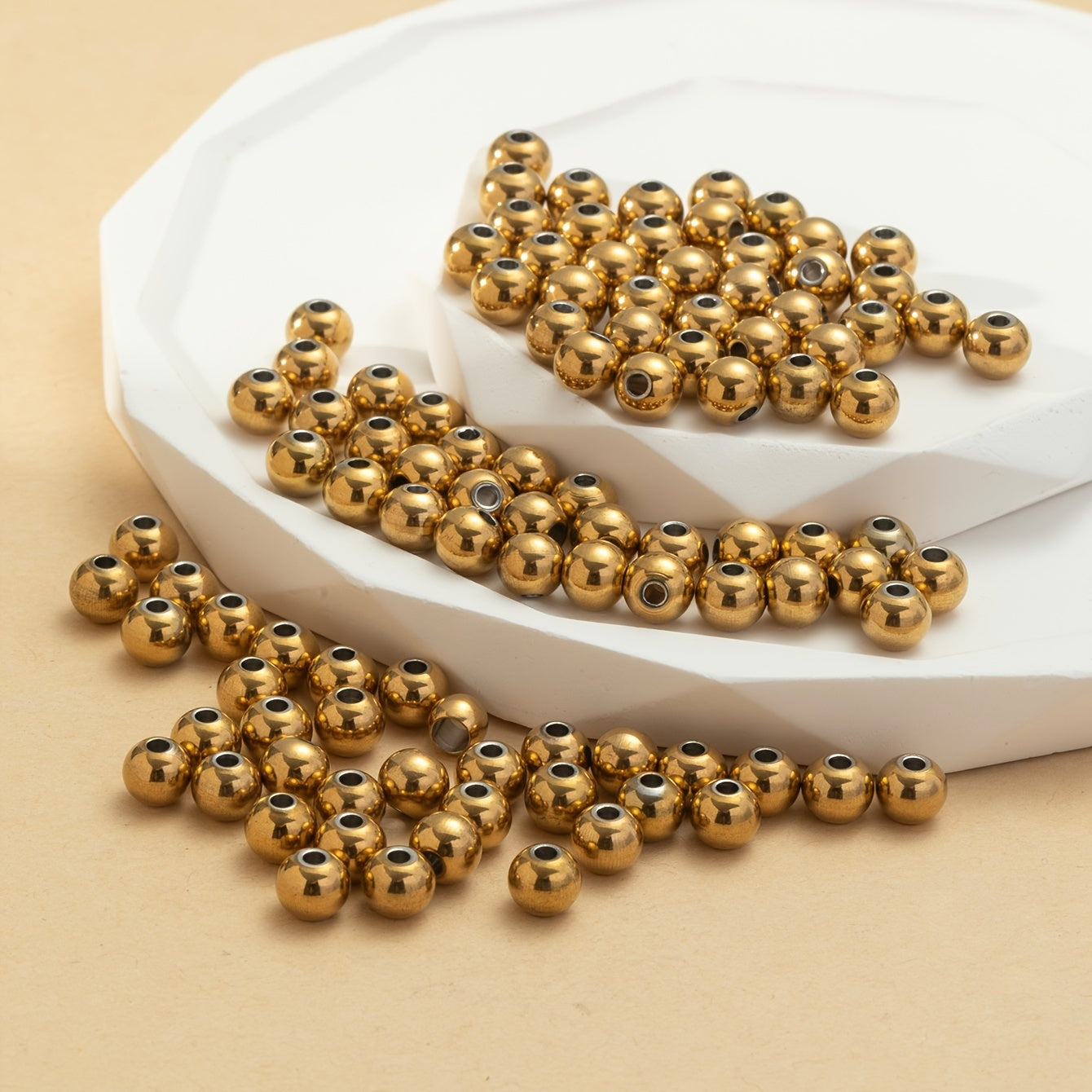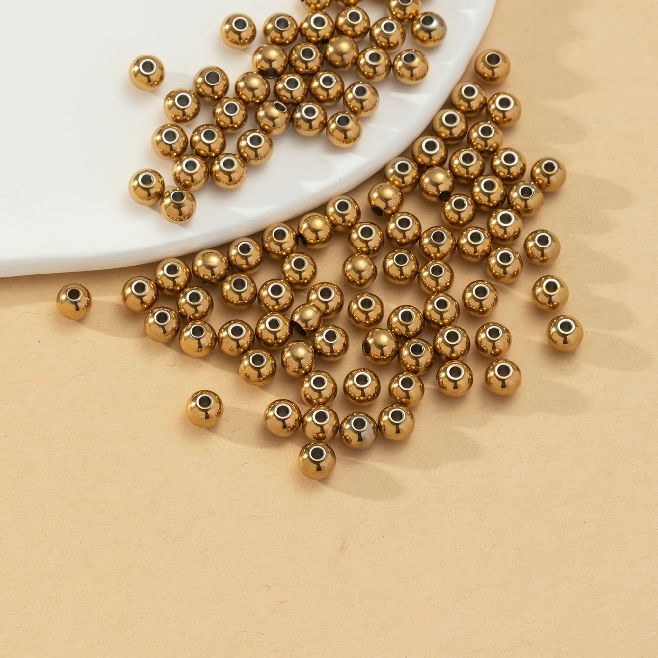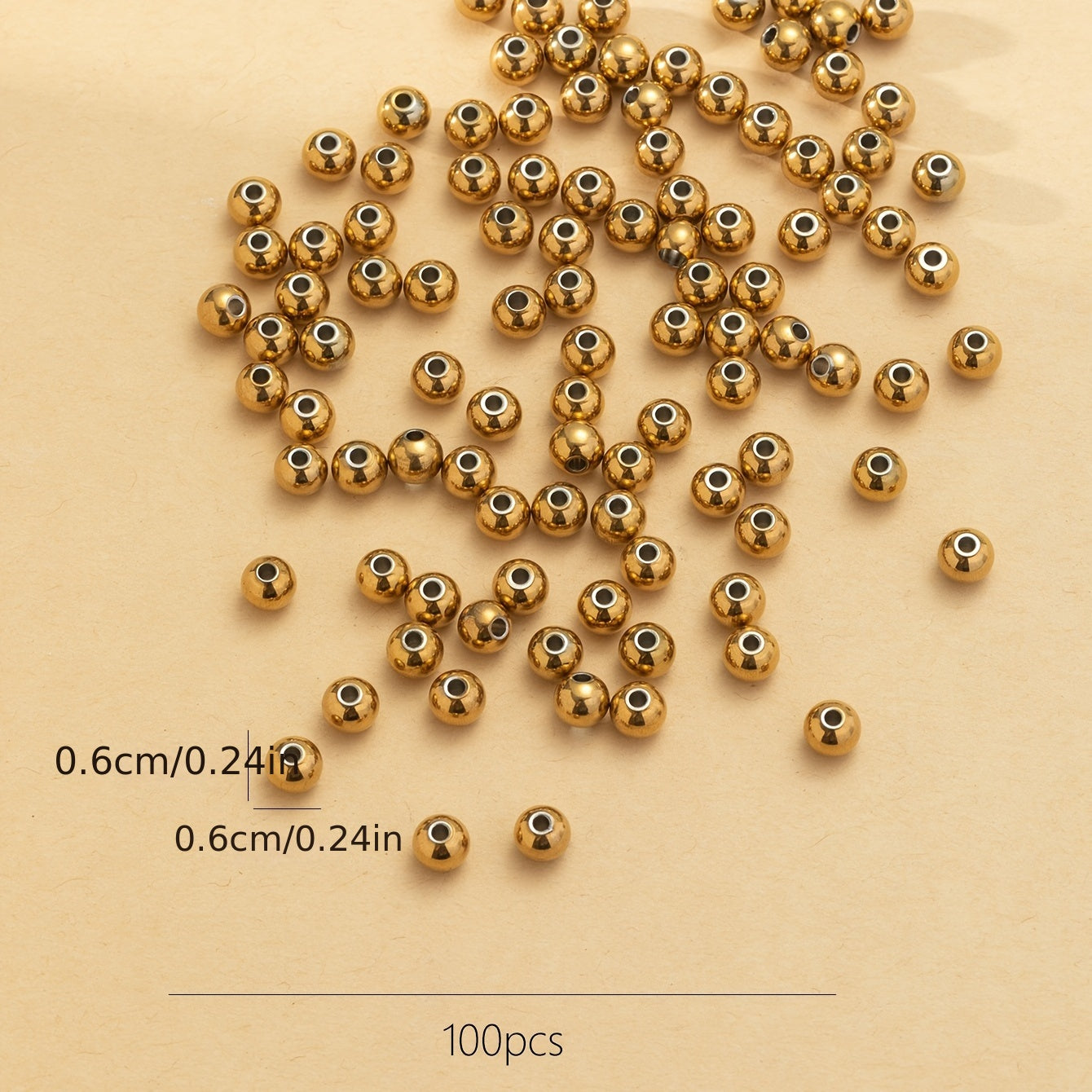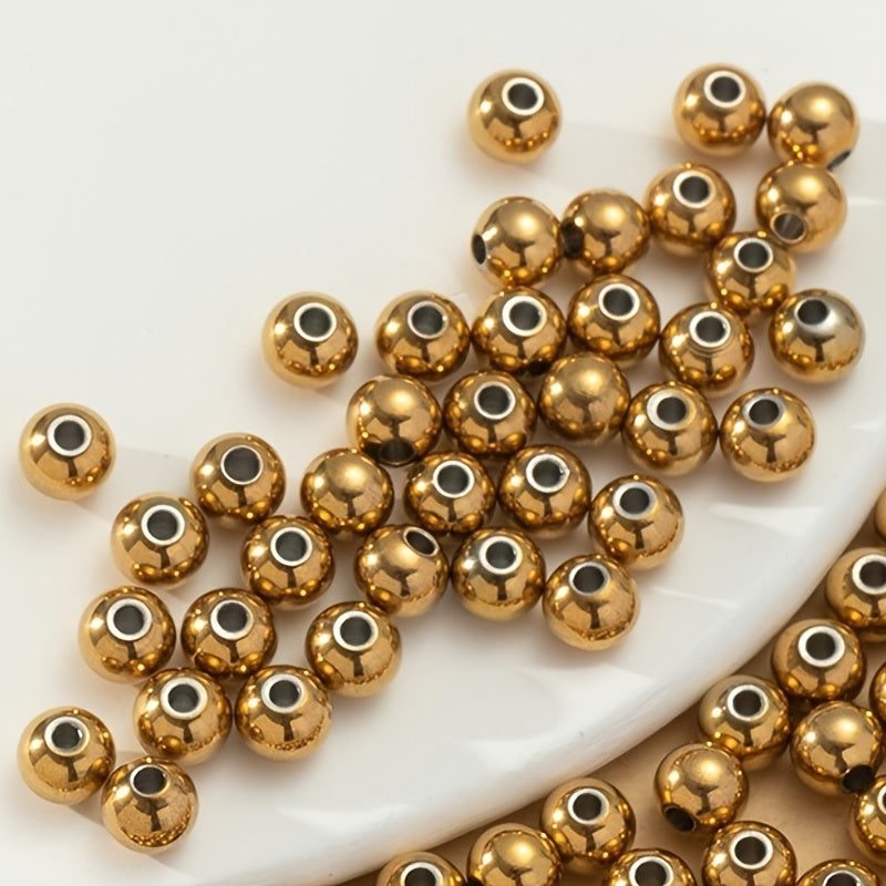 Enhance your jewelry making projects with this pack of 100 golden stainless steel beads. Perfect for bracelets, necklaces, and other crafts.