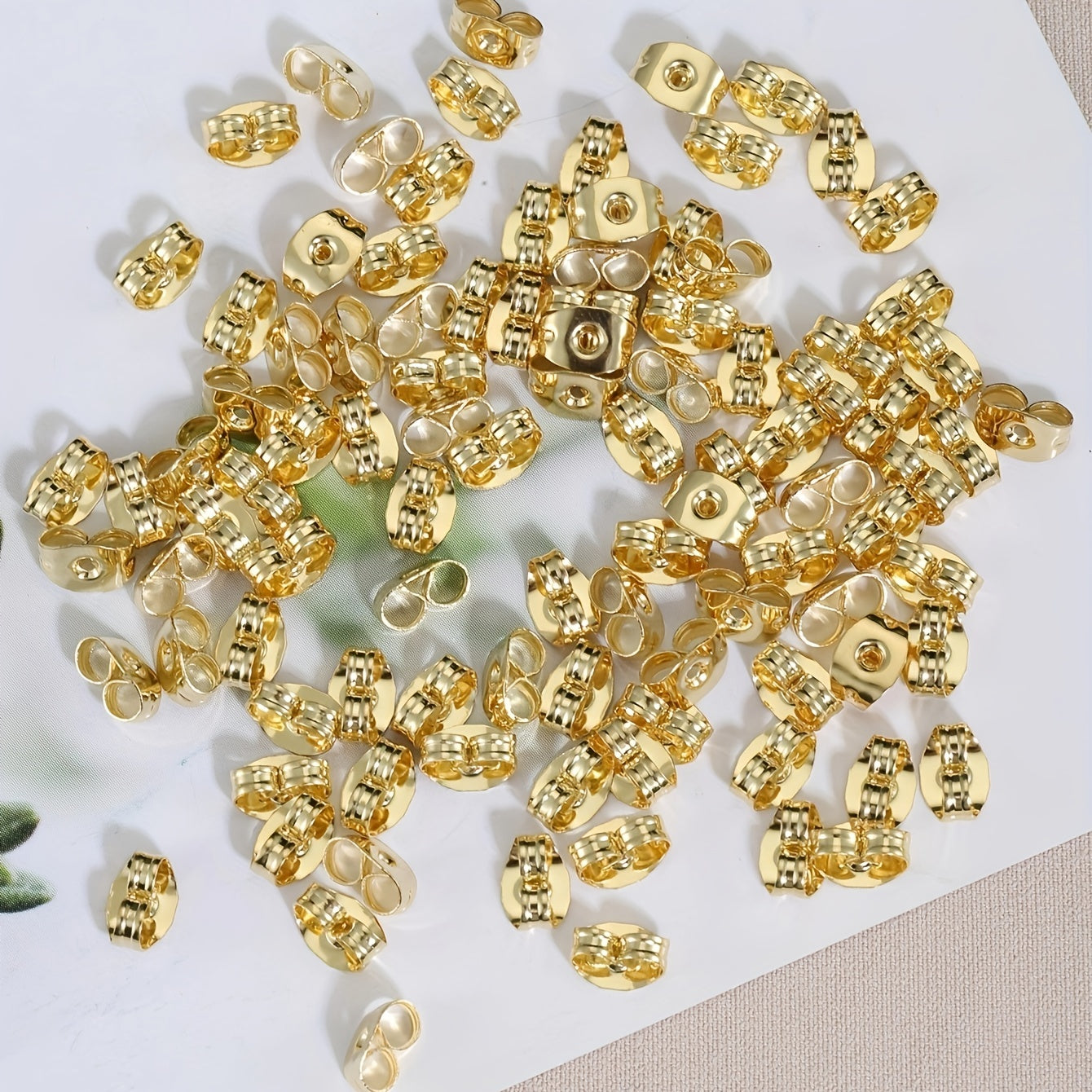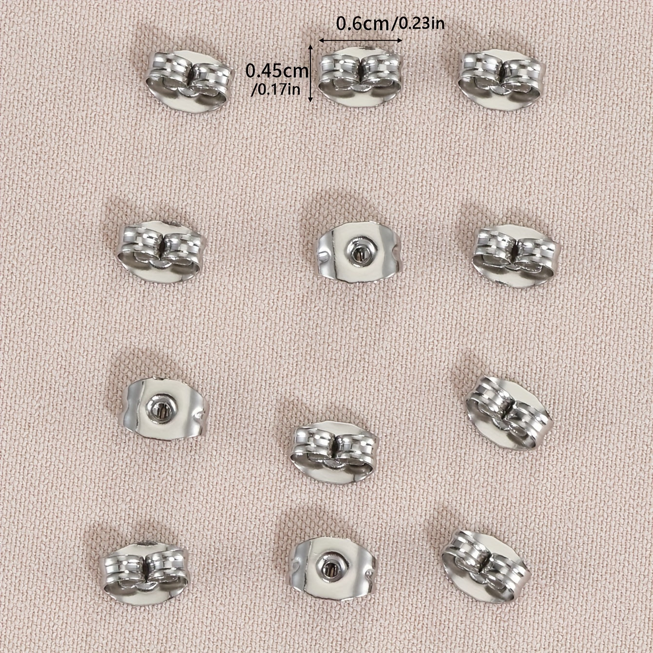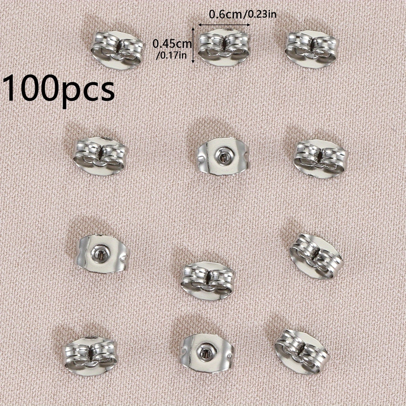 This set includes 100 stainless steel butterfly ear nuts in silver and rose gold tones, perfect for jewelry making projects.