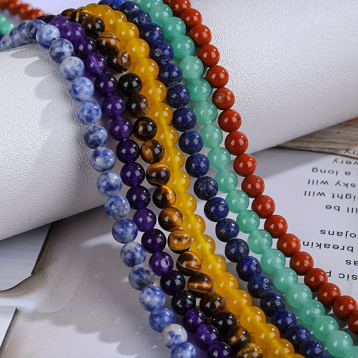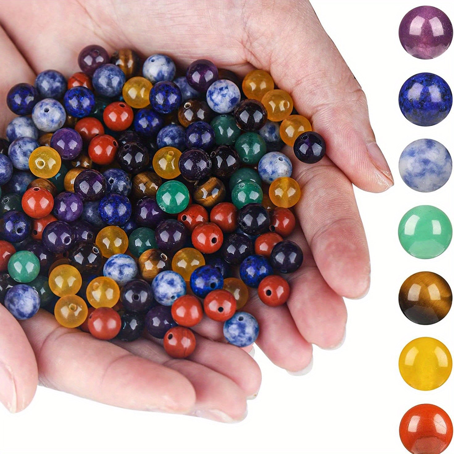 Get 100pcs of 8mm natural stone round crystal beads for DIY jewelry making. Perfect for earrings, bracelets, necklaces, and other accessories. Includes 7 chakra beads.