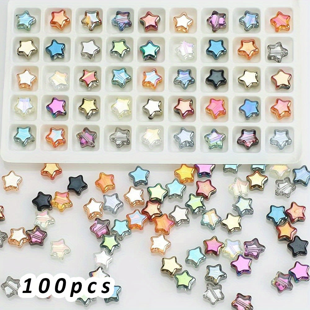 Add a touch of whimsy to your creations with this set of 100 star glass spacer beads. Perfect for bracelets, necklaces, and more!