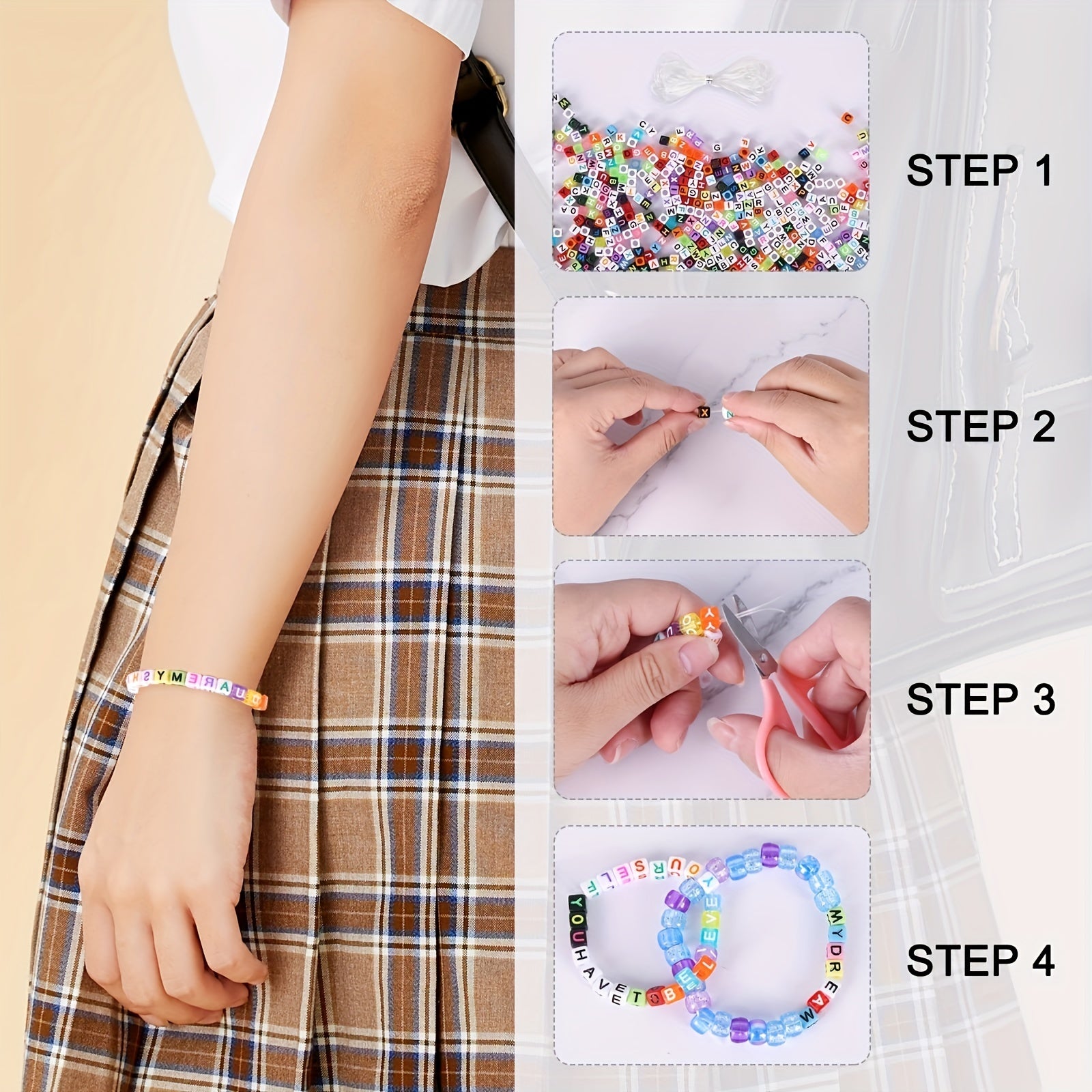 Create personalized jewelry with these 100pcs acrylic English letter beads. Perfect for making earrings, bracelets, necklaces and more.