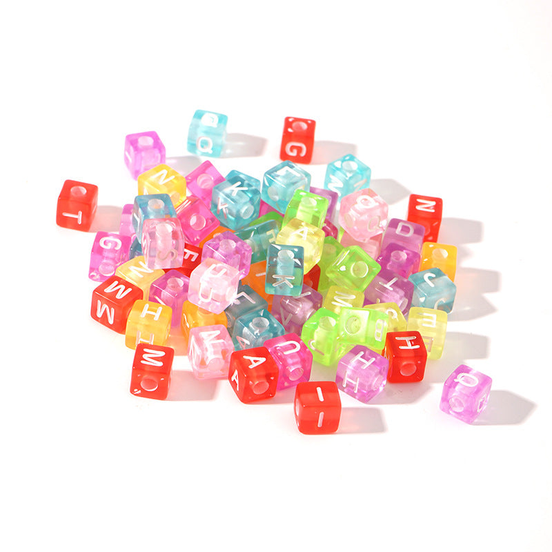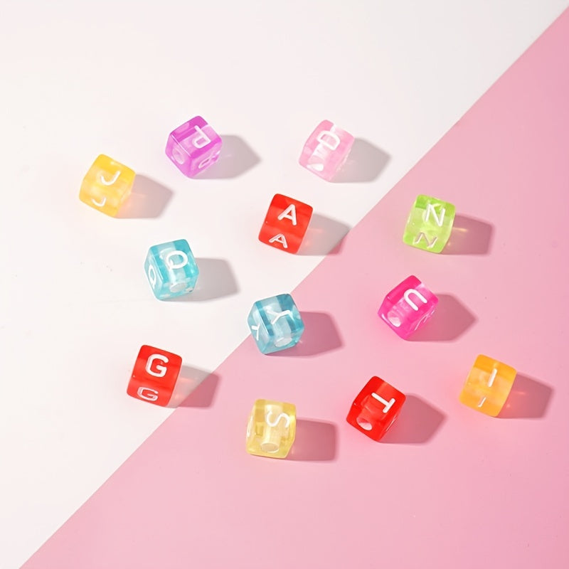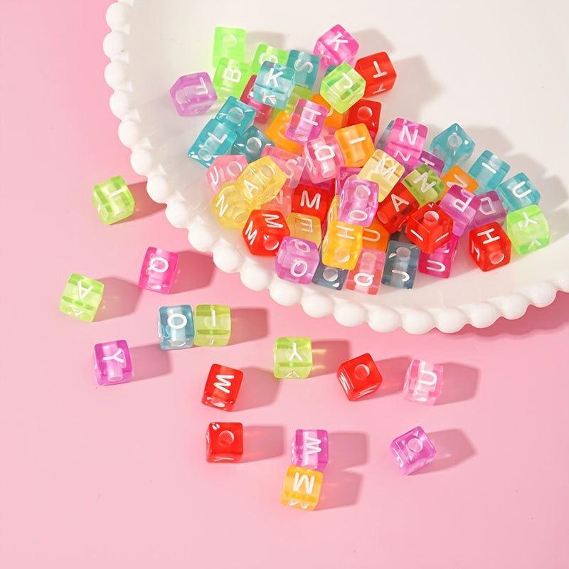 This set includes 100 Macaron big hole beads with acrylic English letters, perfect for DIY bracelets, necklaces, and key chains.