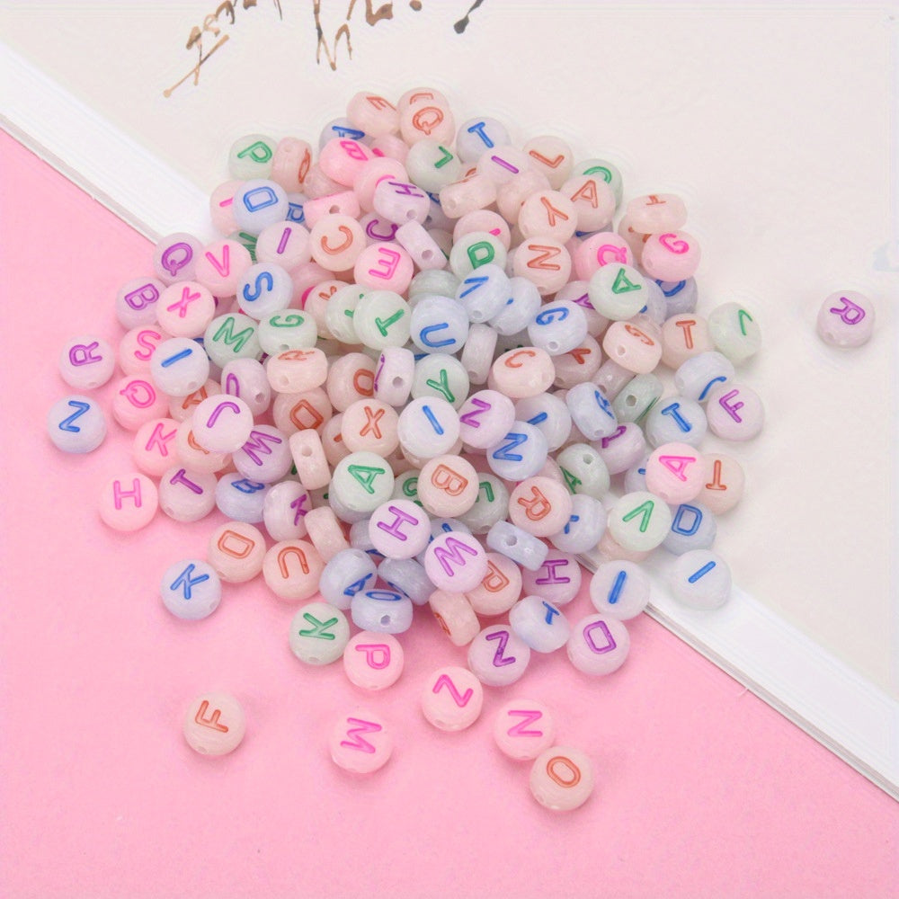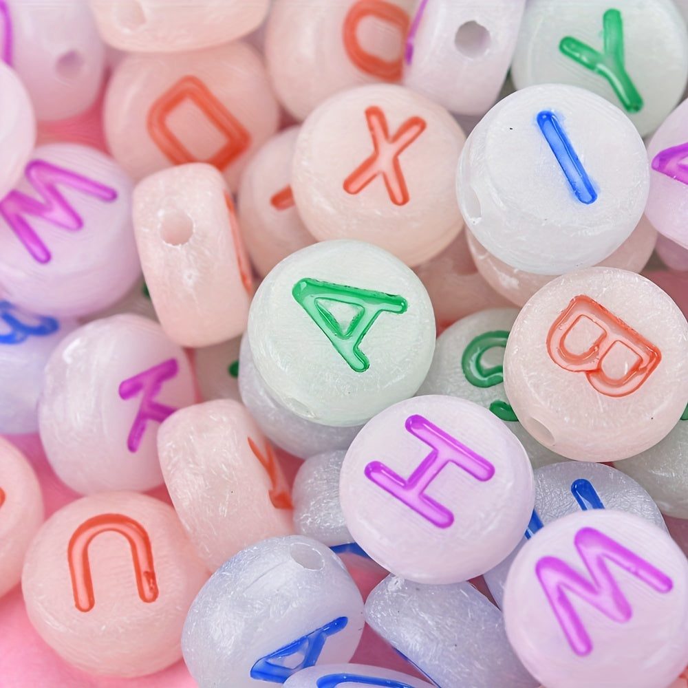 Create your own unique jewelry with these luminous English letter beads. Perfect for bracelets, necklaces, and other accessories.