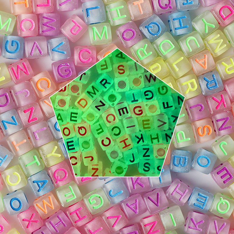 Create beautiful jewelry pieces with these luminous square letter beads. Perfect for bracelets, necklaces, and other DIY projects.