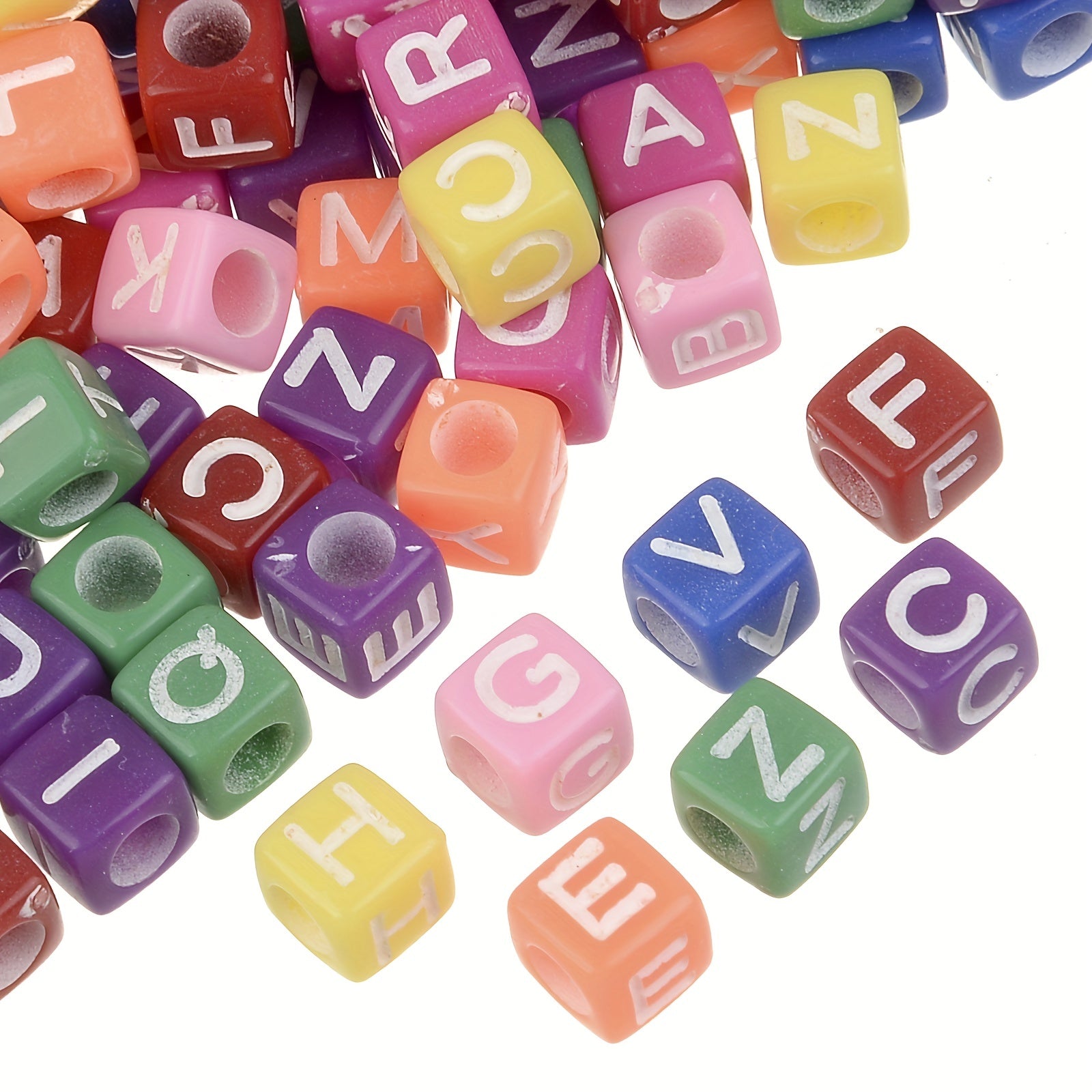 Add a personalized touch to your jewelry with this set of 100 mixed letter acrylic spacer beads. Ideal for creating bracelets, necklaces, and other accessories.
