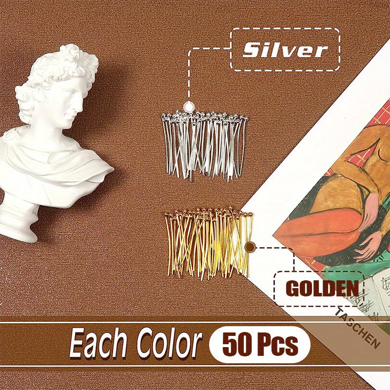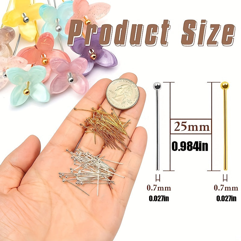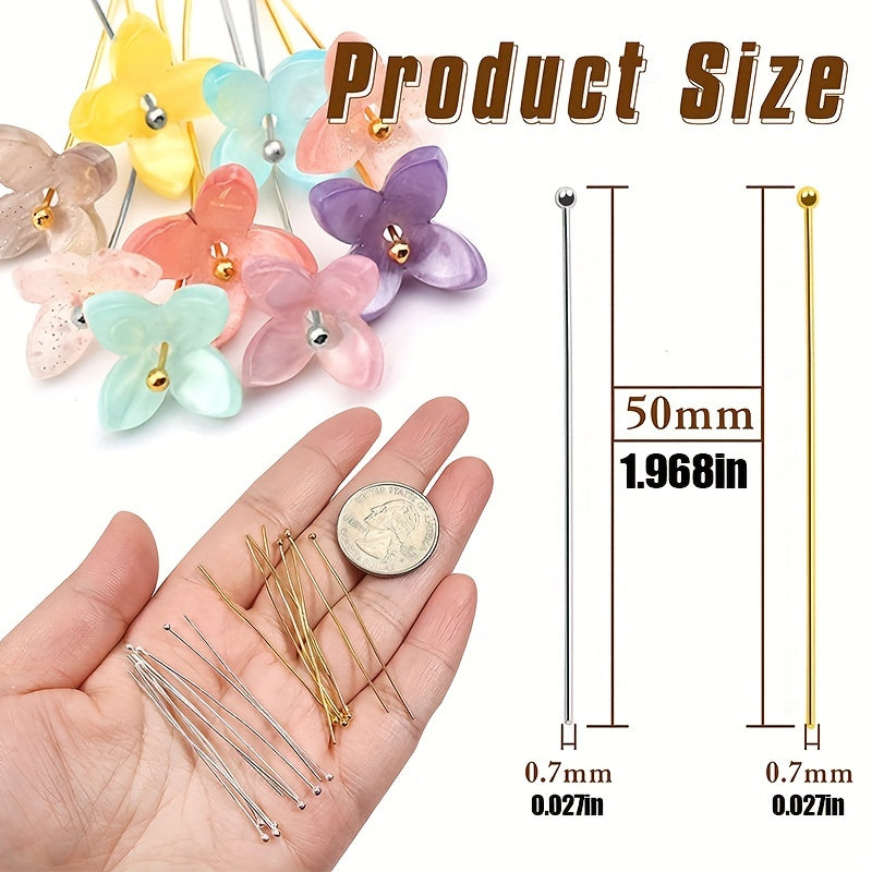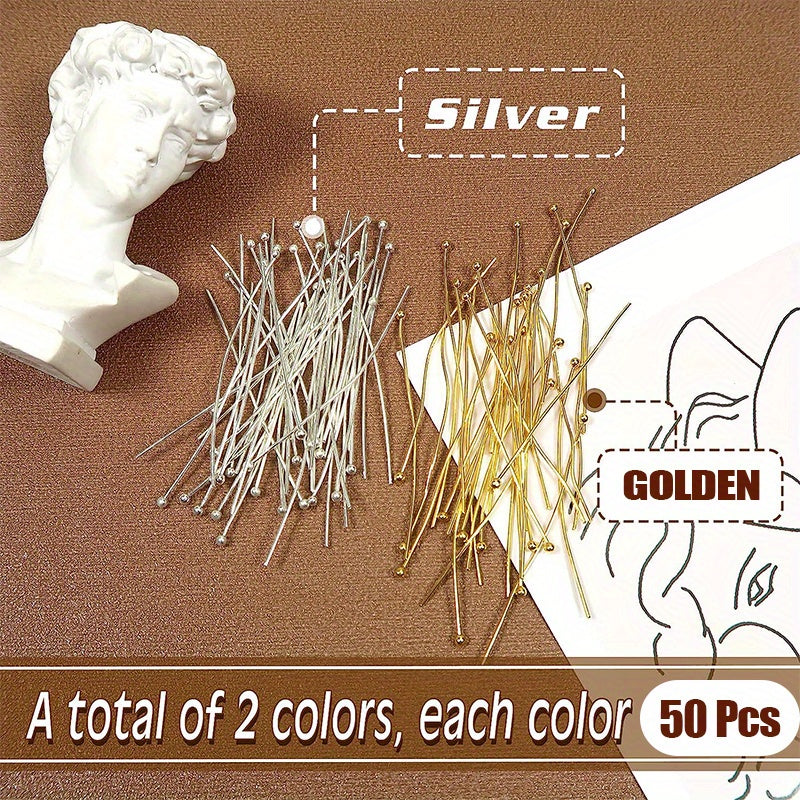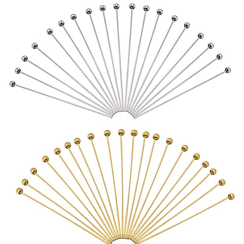 Get this pack of 100 brass ball head pins in golden or silvery finish, perfect for jewelry making. The pins measure 25mm to 50mm in length.